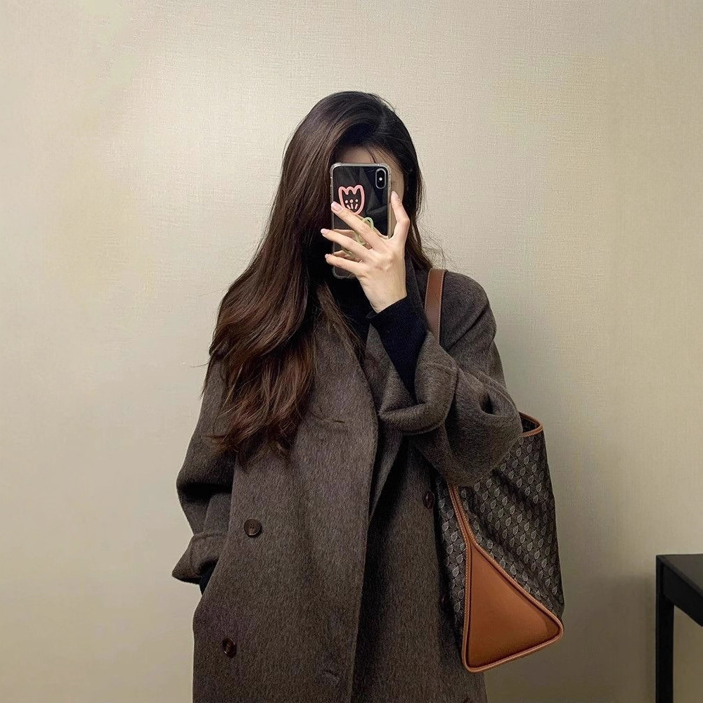 美拉德穿搭高级感毛呢大衣女秋冬加厚过膝中长款韩系风呢子外套