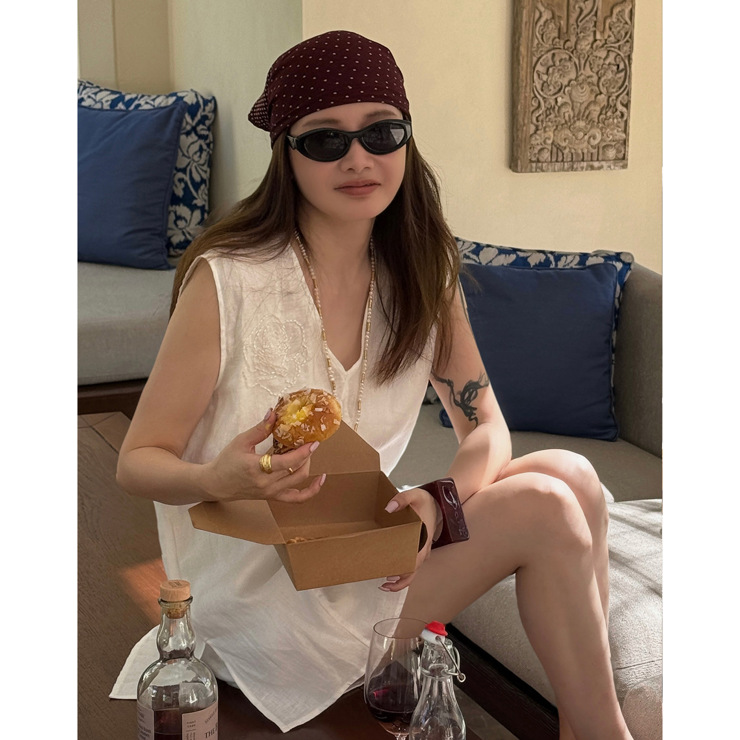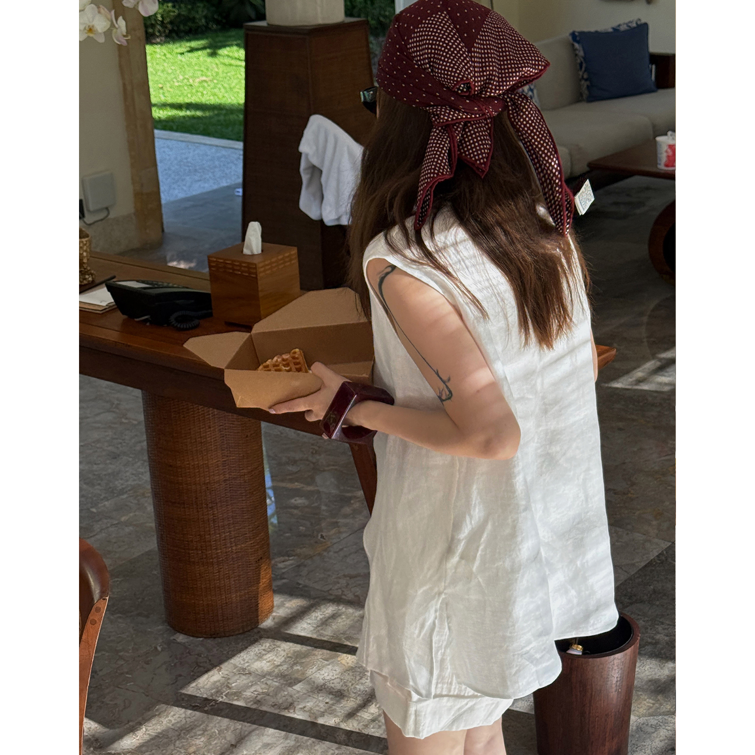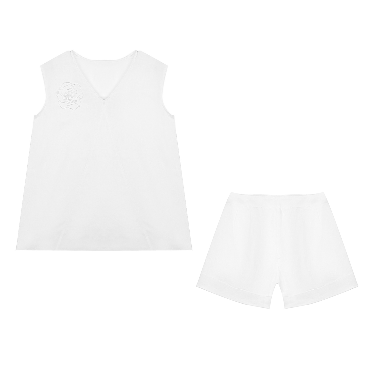 CHU楚妞[织语]苎麻刺绣套装2025夏季新款女老钱背心短裤两件套
