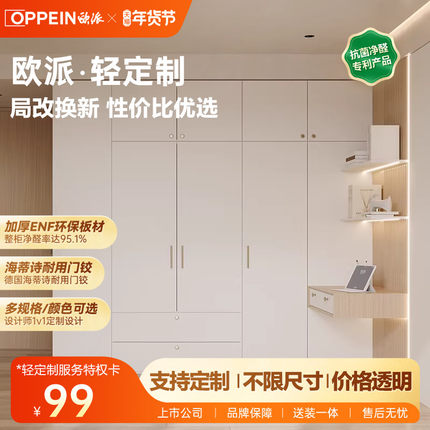 欧派轻定制衣柜 奶油风家用卧室组装衣柜衣帽间储物柜子定制设计