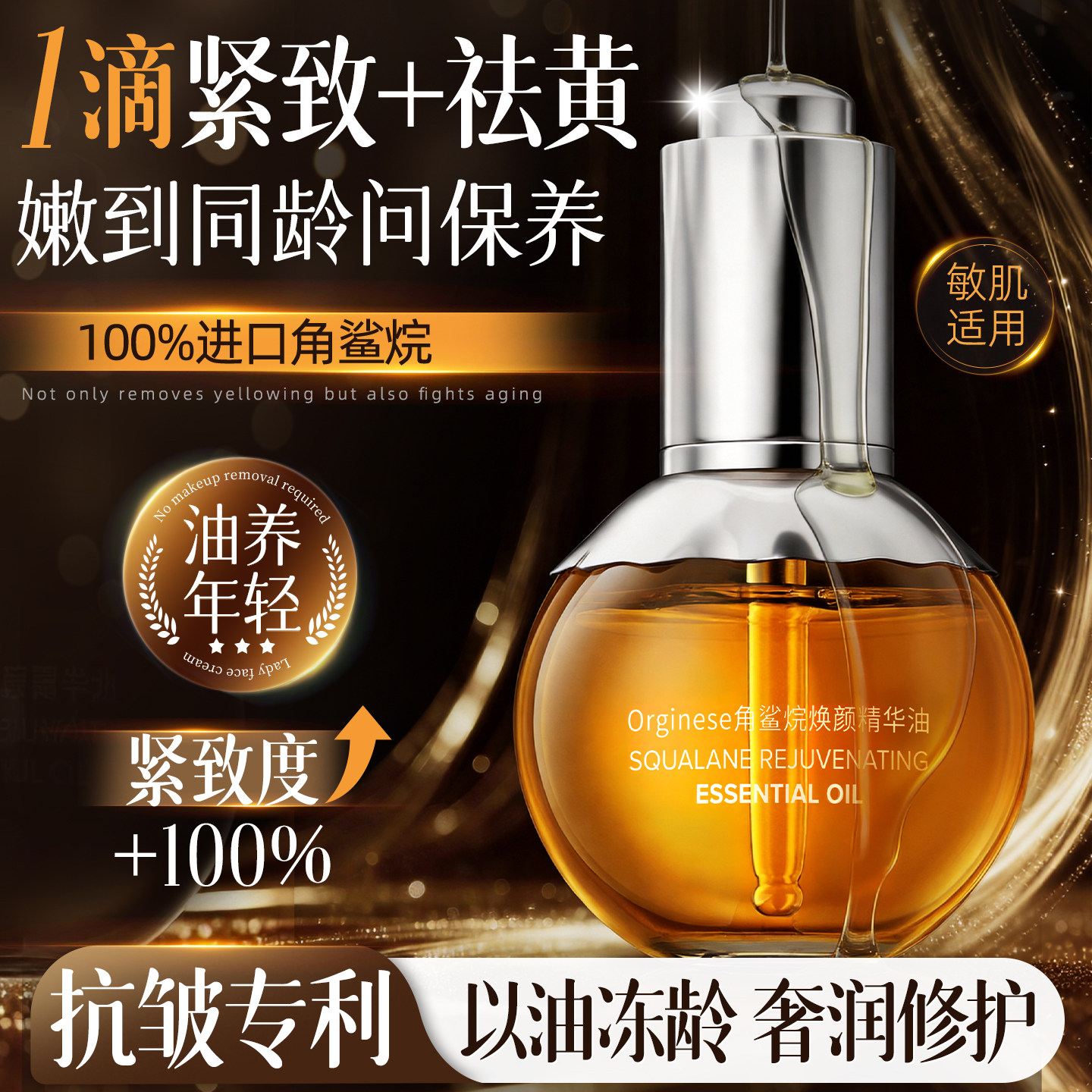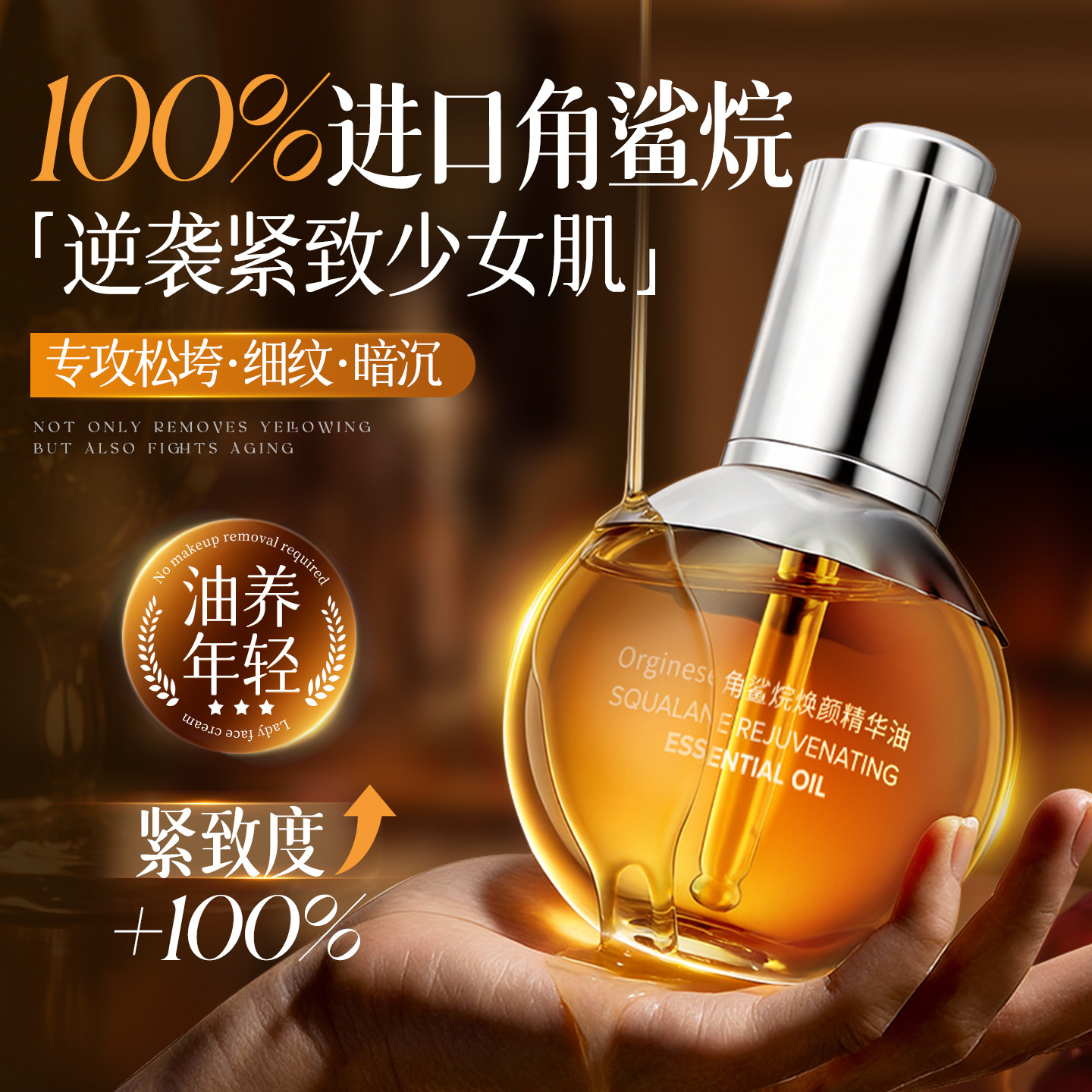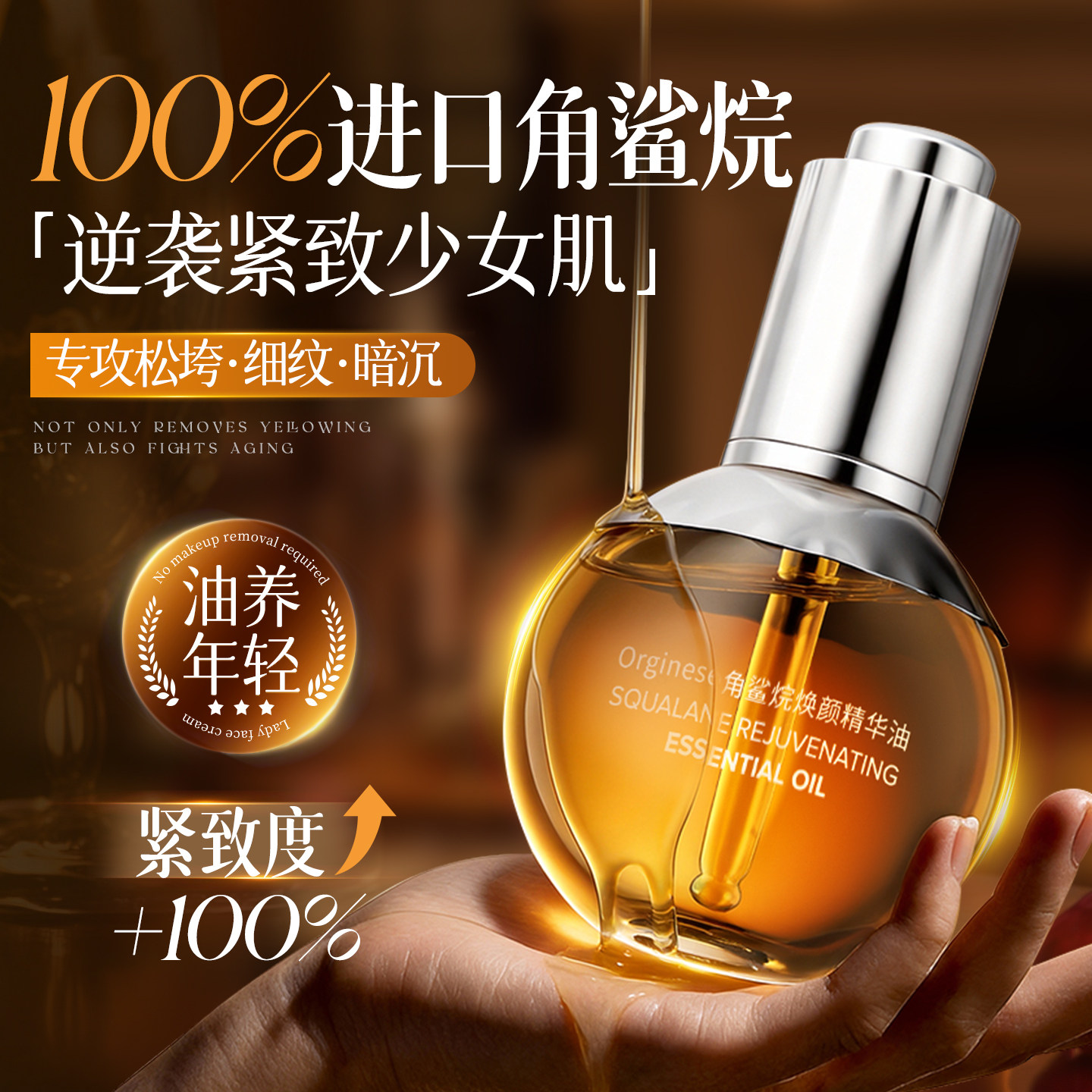 角鲨烷精华油液紧致抗皱抗衰老淡纹去黄提亮以油养肤保湿精油面部