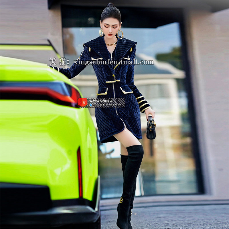 冬季英伦风显瘦连帽棉服新款保暖气质减龄修身中长款外套