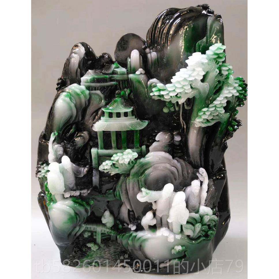 高档岫翡翠原石玉石头摆件指器日高升 玉山水摆件独山玉石彷雕工