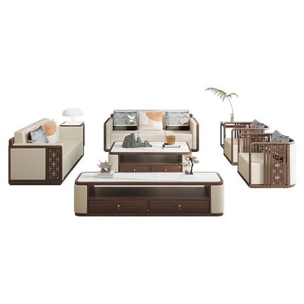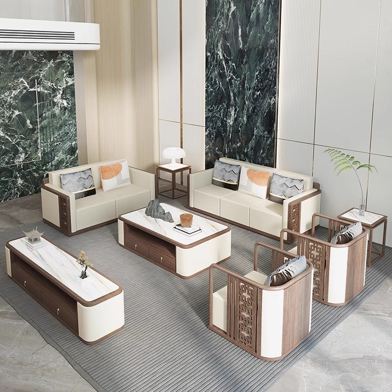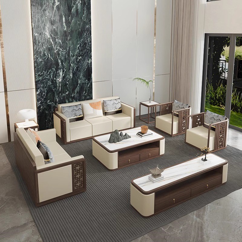 新中式实木沙发组合现代简约宋风白蜡木客厅大小户型皮艺家具定制