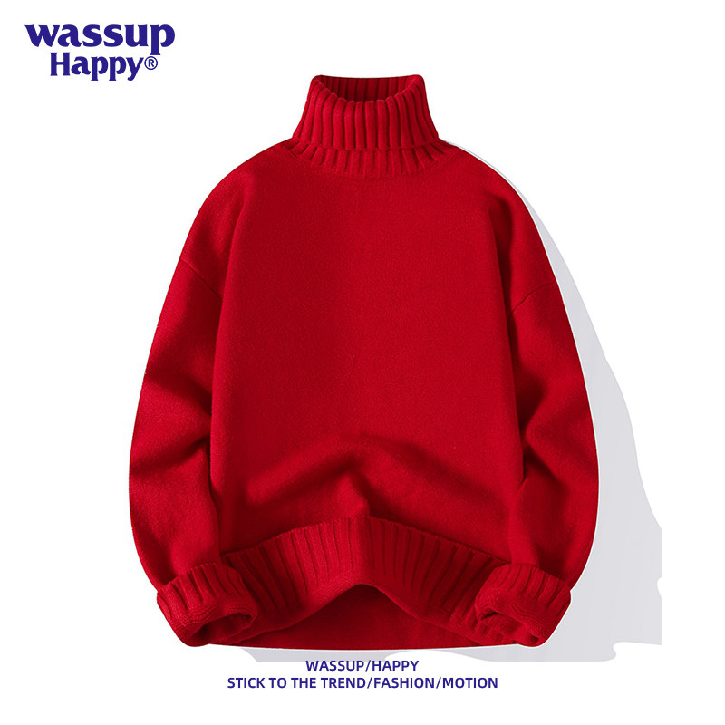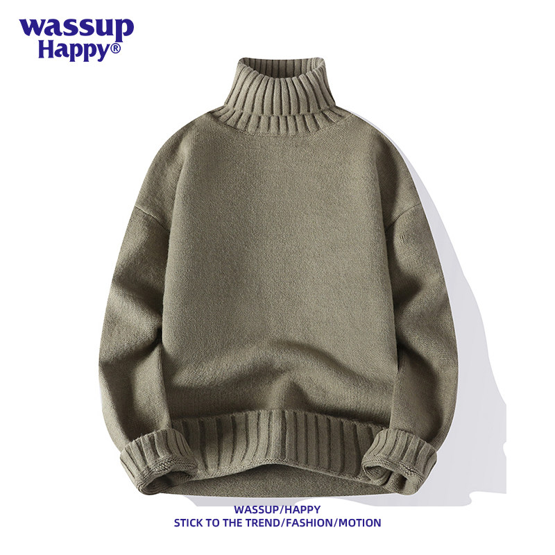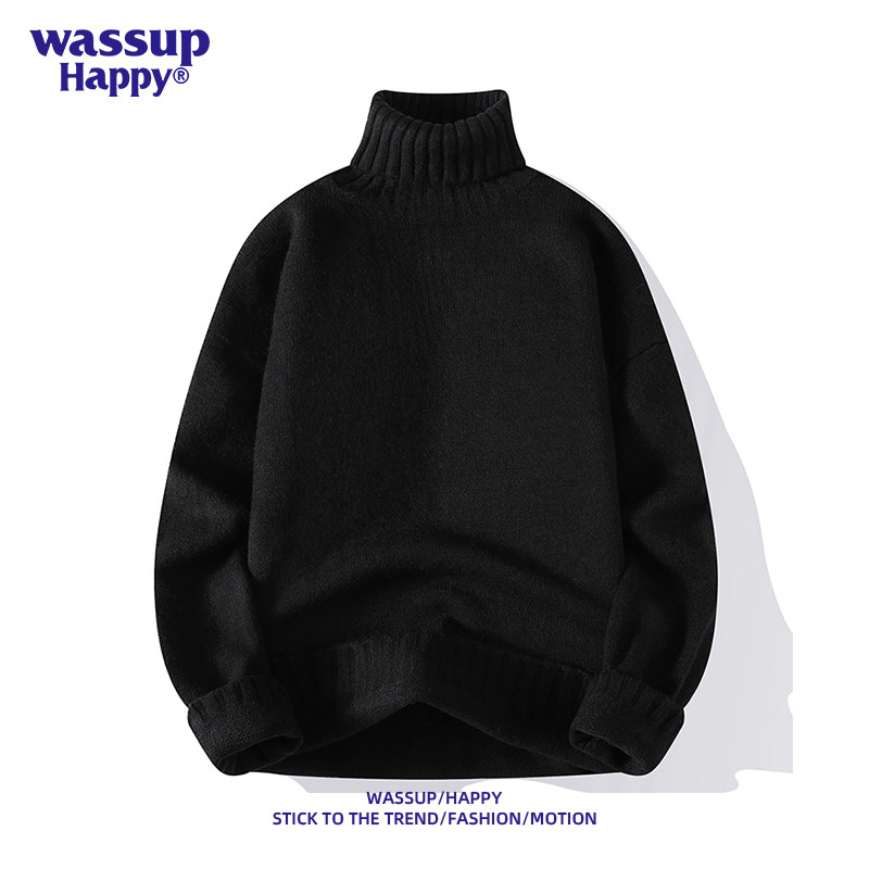 wassup happy高领毛衣男女同款秋冬季新款加绒加厚休闲打底针织衫