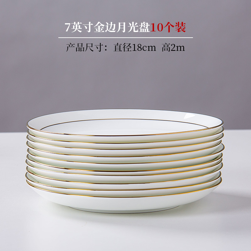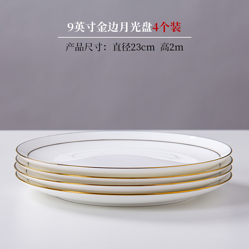 盘子菜盘家用景德镇陶瓷盘西水果盘摆台骨碟子金边骨瓷餐具盘套装
