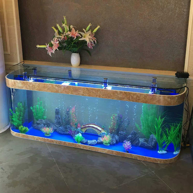 厂家批发玻璃鱼缸 创意圆弧生态缸 观赏金鱼缸 两角圆弧吧台鱼缸