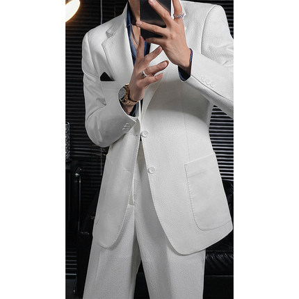 龙叨叨 定制风格肌理感面料高级西装套装 英伦风修身西服西裤新款