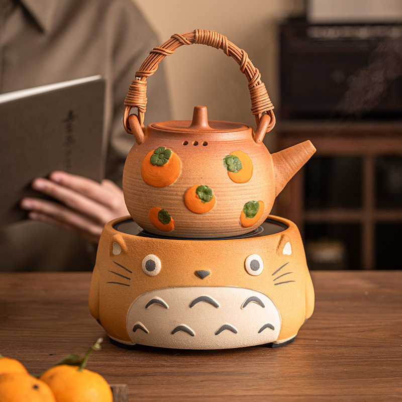 卡通龙猫围炉煮茶电陶炉新款室内家用可爱煮茶器侧把茶壶套装茶炉