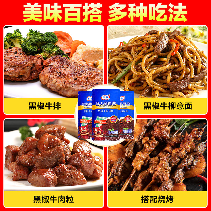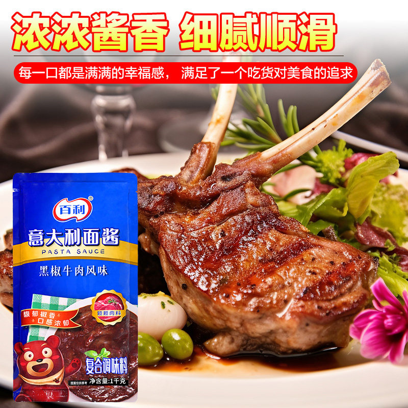 百利意大利面酱黑椒牛肉商用番茄罗勒奶油培根风味拌面酱专用调料