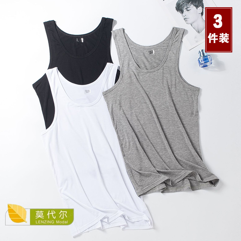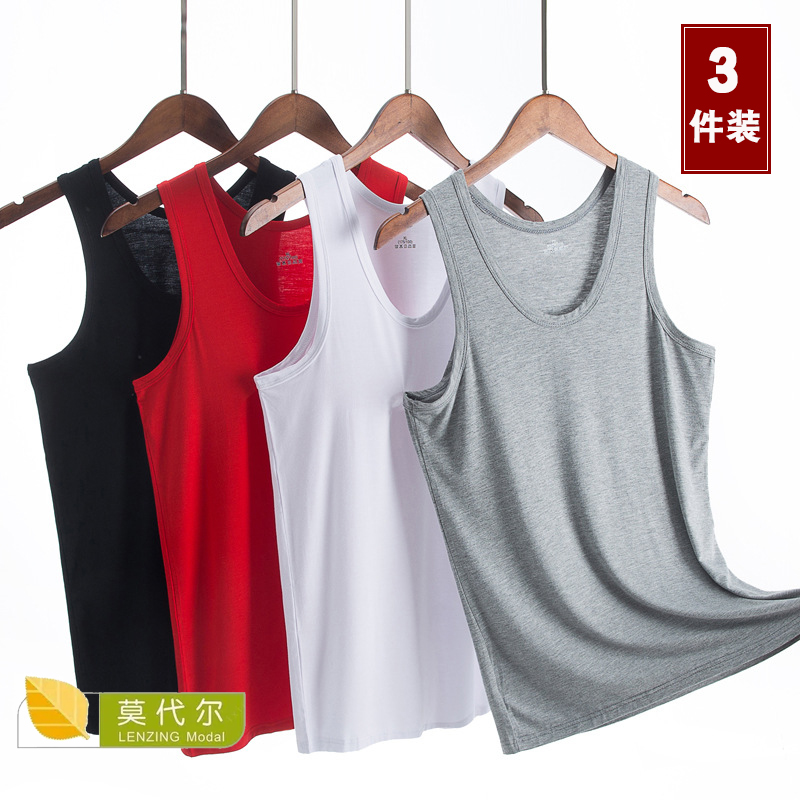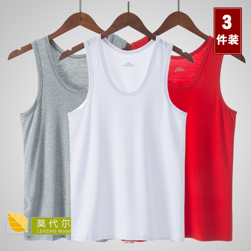 3件装 夏季大红本命年莫代尔棉背心男士纯色修身无袖t恤打底衫潮
