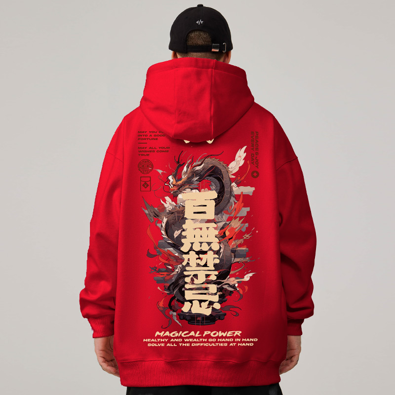 国潮中国风复古大码卫衣男装纯棉重磅做旧高街外套加绒加厚秋冬季