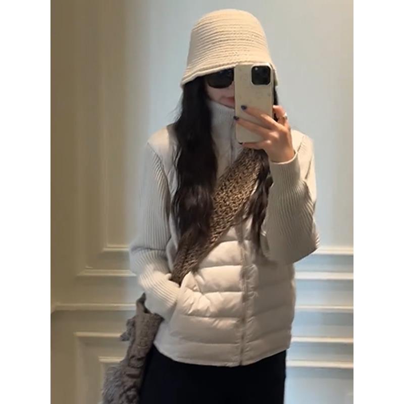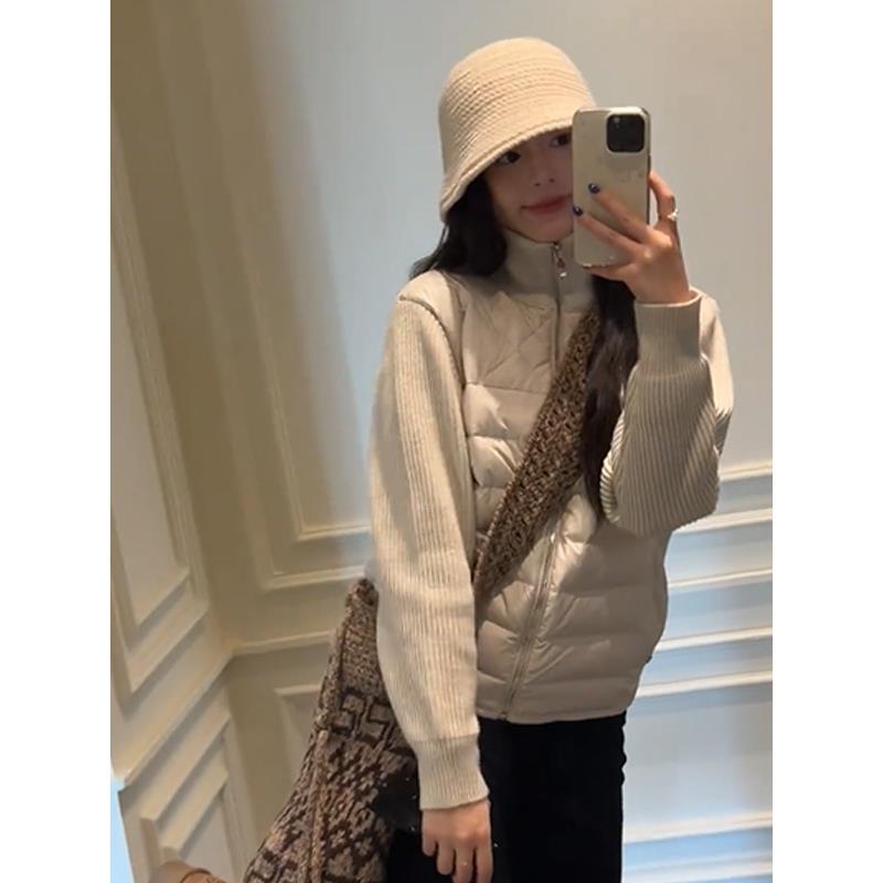 徐若桃studio同款羽绒棉服拉链外套女冬季设计感拼接针织立领棉衣