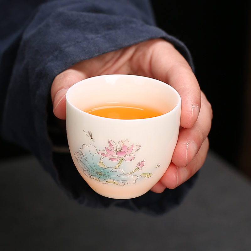 陶瓷泡茶杯羊脂玉小茶杯茶具