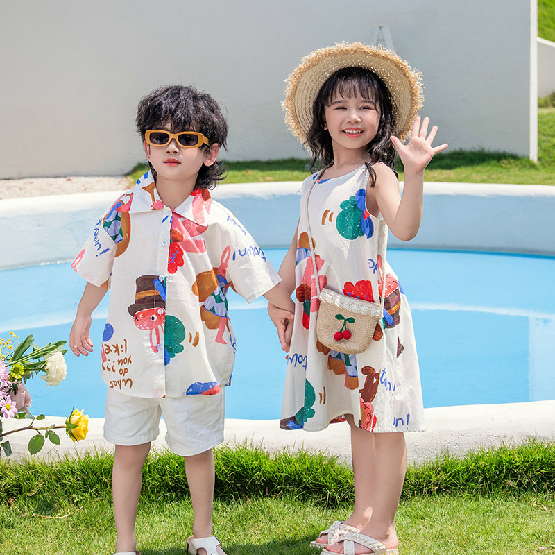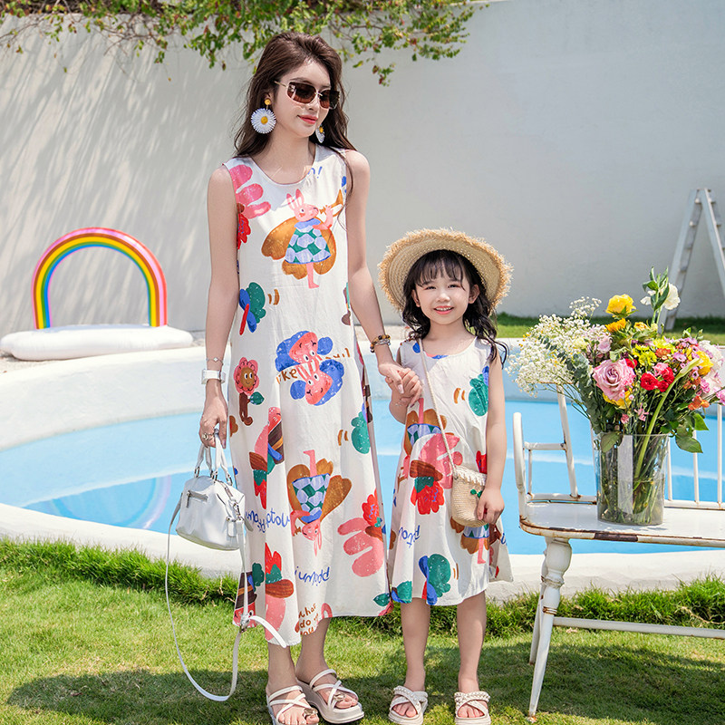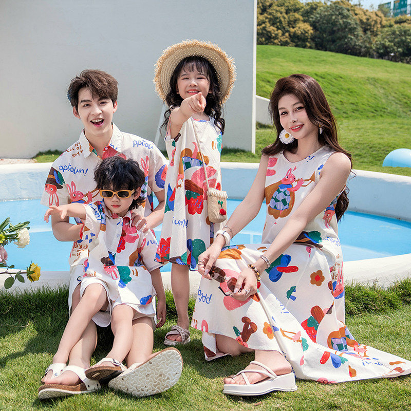 三亚海边沙滩度假亲子装2025新款夏季一家三口母女旅游背心连衣裙