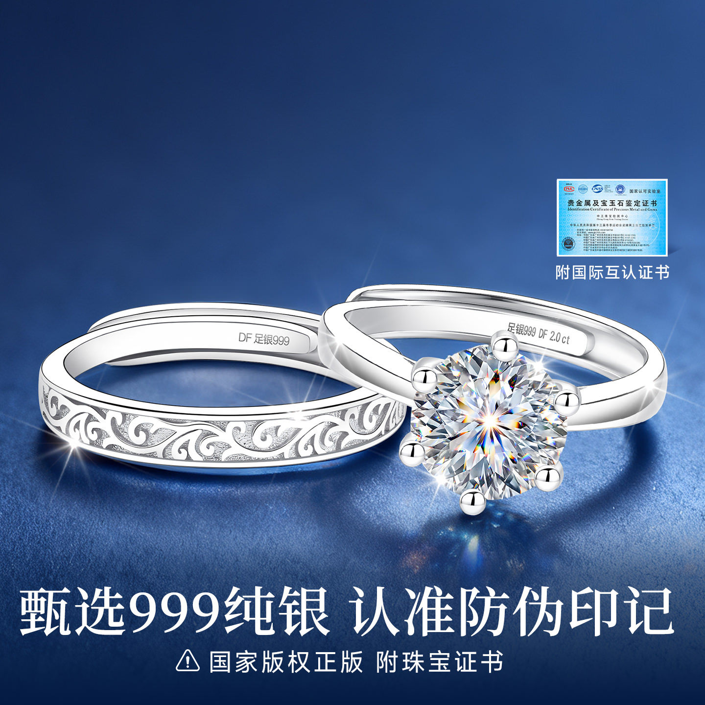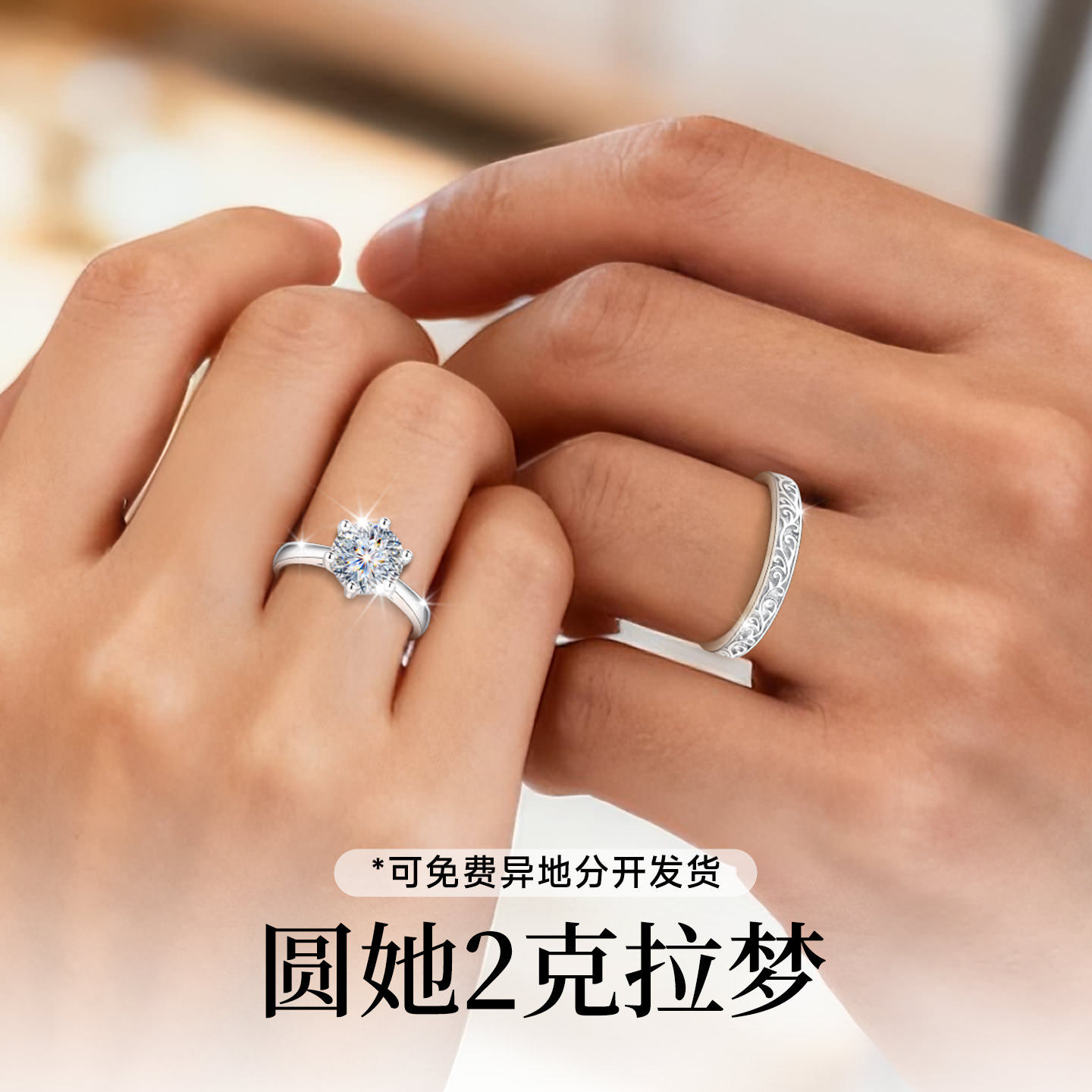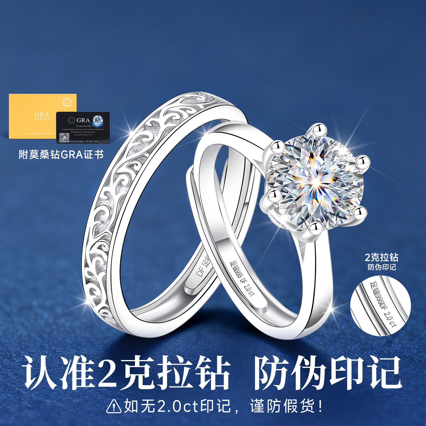 银999纯银2克拉莫桑石莫桑钻钻戒情侣对戒求婚婚戒结婚一对情侣款