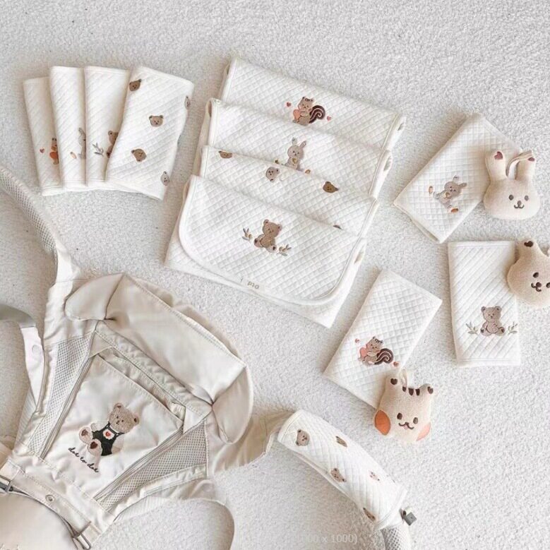 宝宝背带口水巾ins韩系ergobabay通用吮吸带纯棉婴儿腰凳胸前咬巾