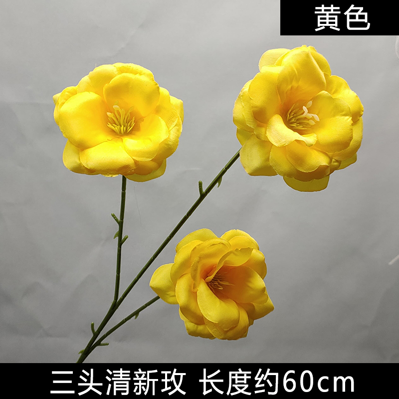 厂家直销三头清新玫瑰仿真花特价婚庆花艺花材婚礼现场假花装饰花