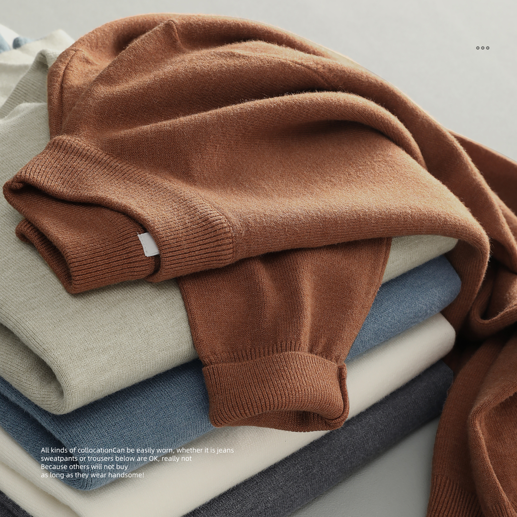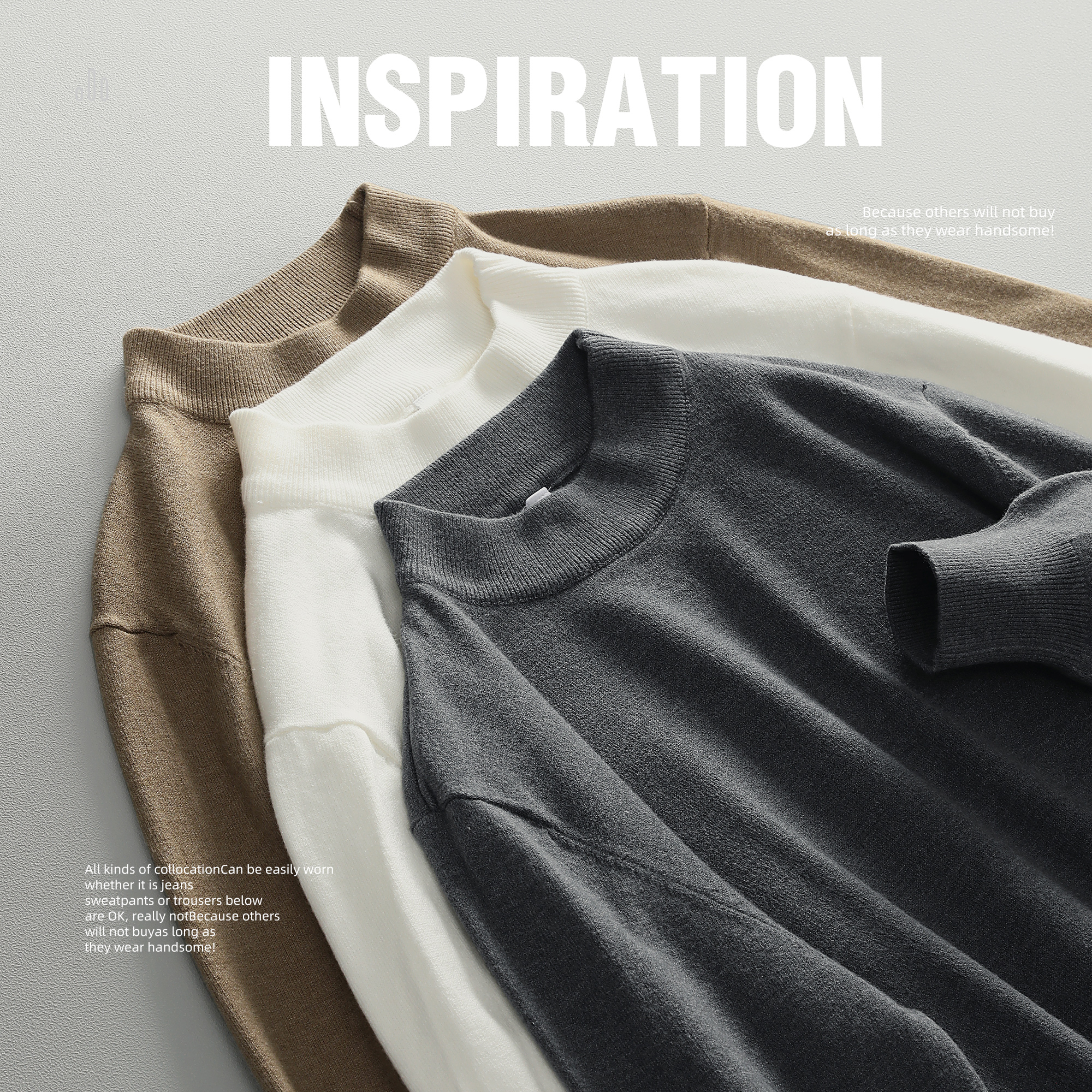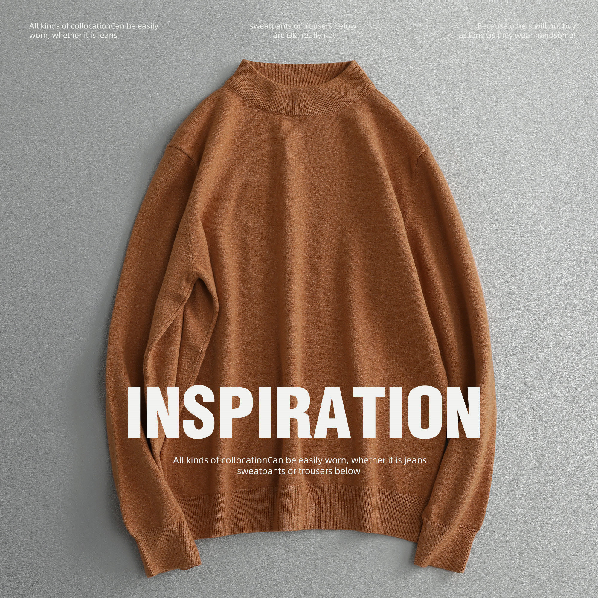 LUUD 日常内搭修身打底针织衫复古简质纯色青年通勤半高领毛衣男