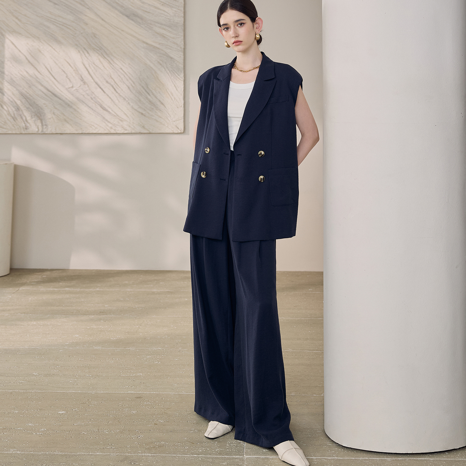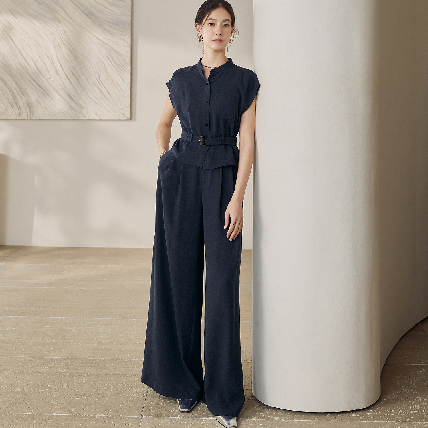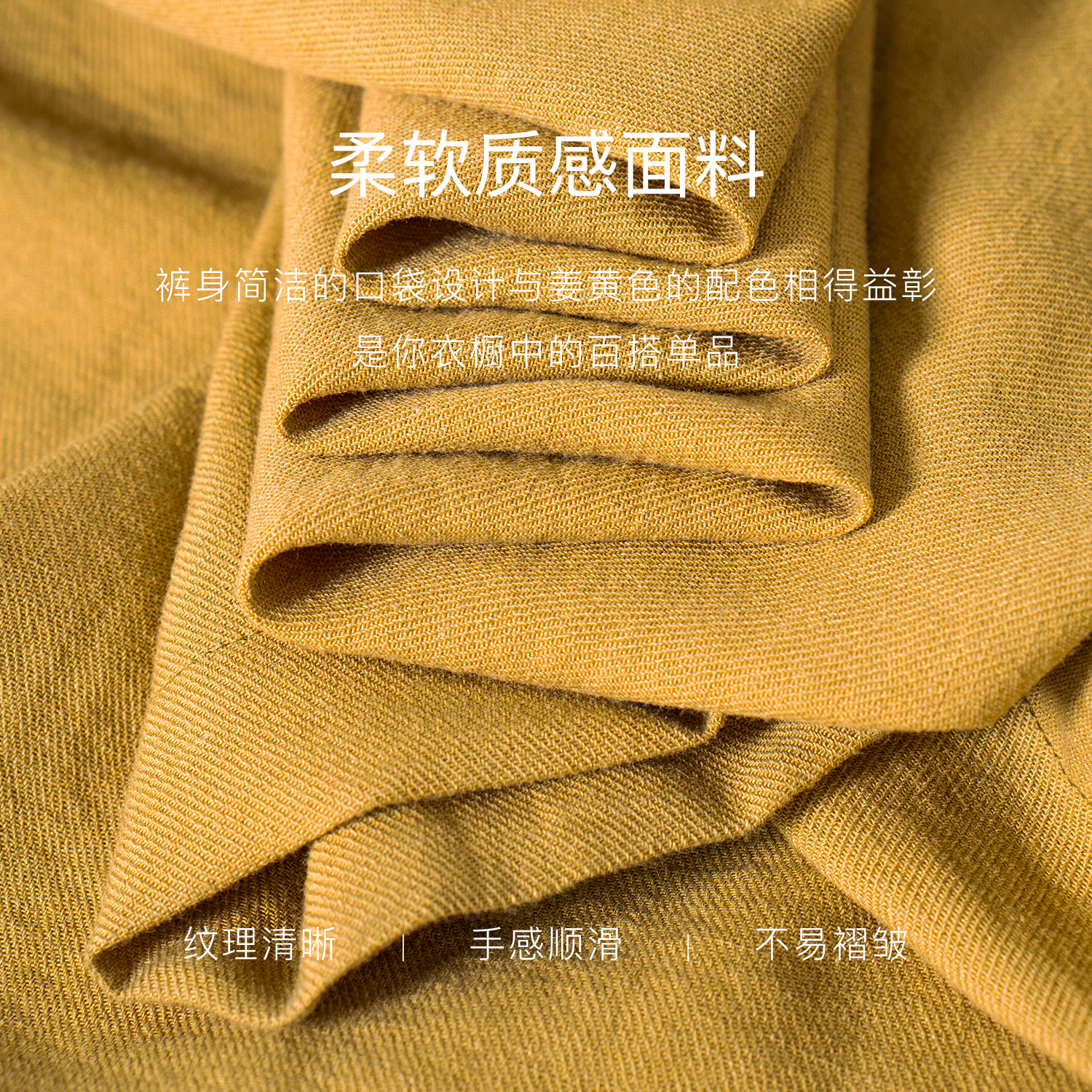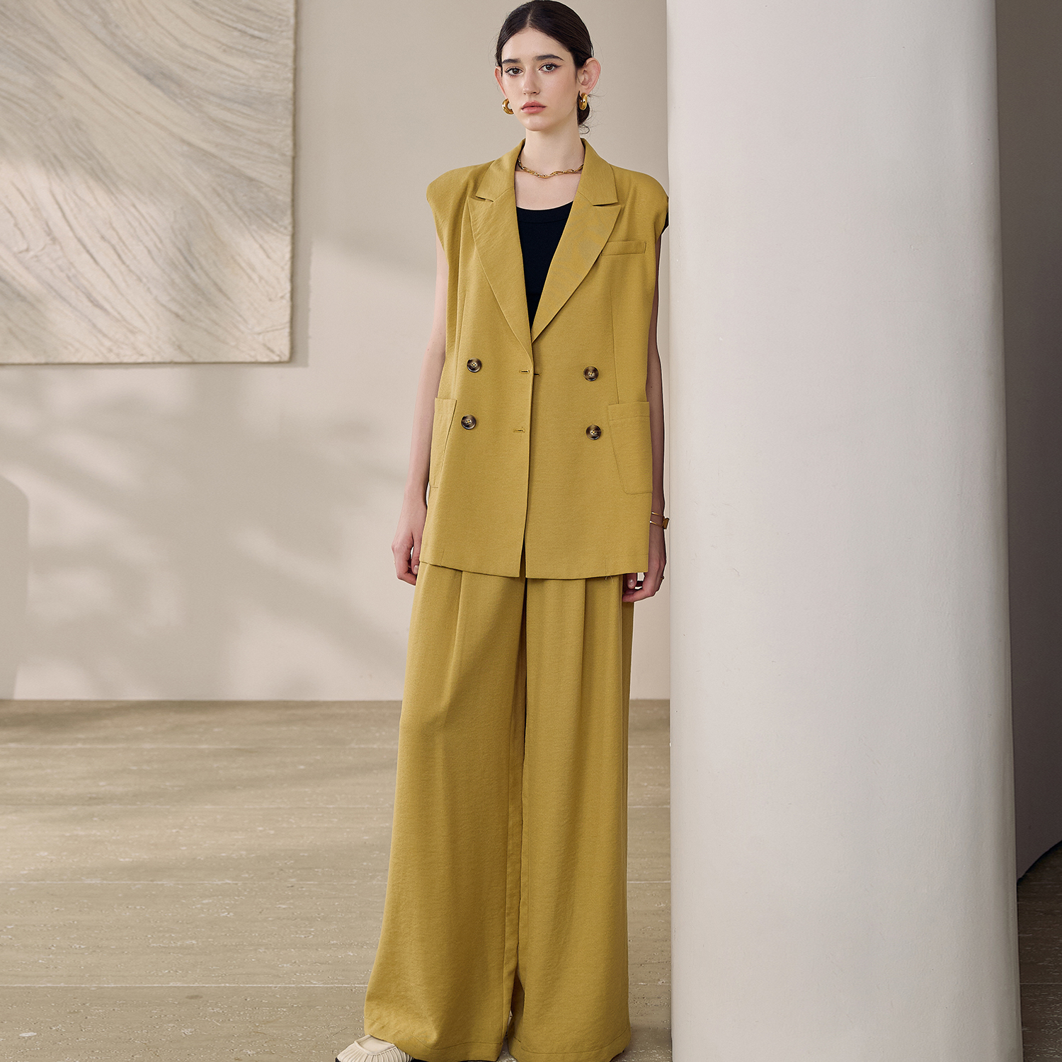 罗衣时尚通勤高腰阔腿裤2025夏季新款百搭慵懒感姜黄色套装12460