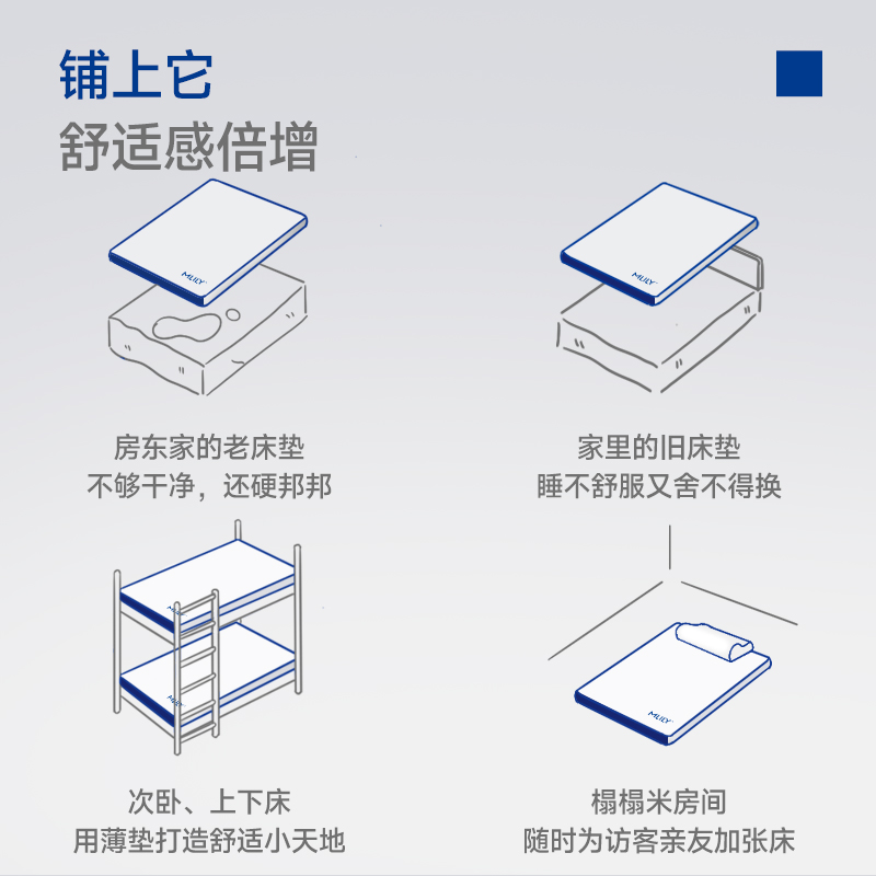梦百合快充记忆棉床垫租房宿舍软垫家用卧室薄垫榻榻米床褥子mall
