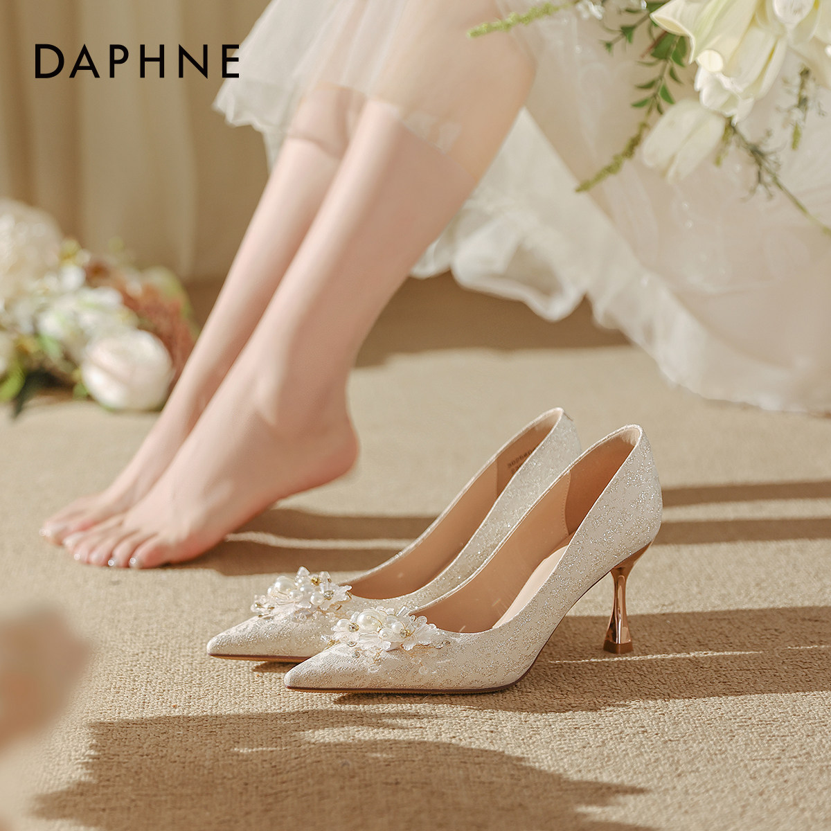 达芙妮红色高跟鞋细跟尖头单鞋女2025新款婚鞋新娘鞋秀禾敬酒鞋子