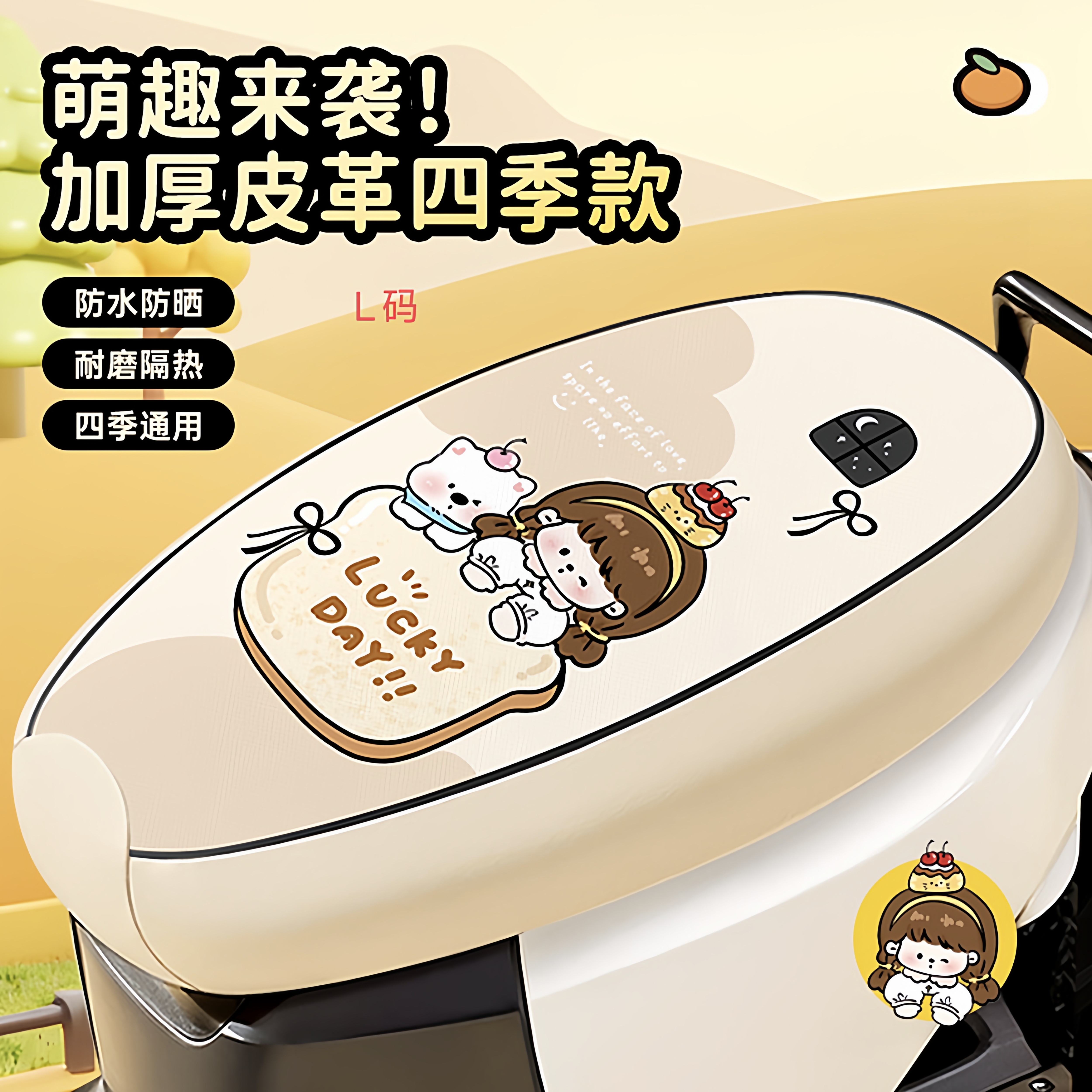 电动车大号四季可用卡通坐垫套贴皮座套防水防晒防滑踏板车加厚