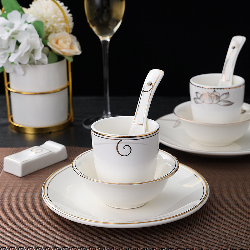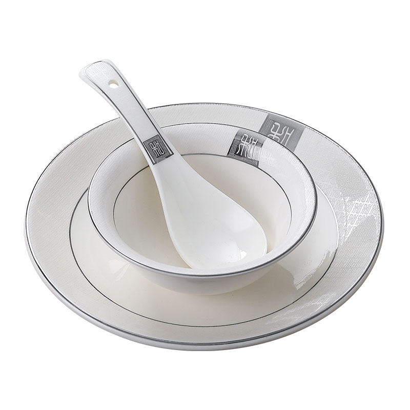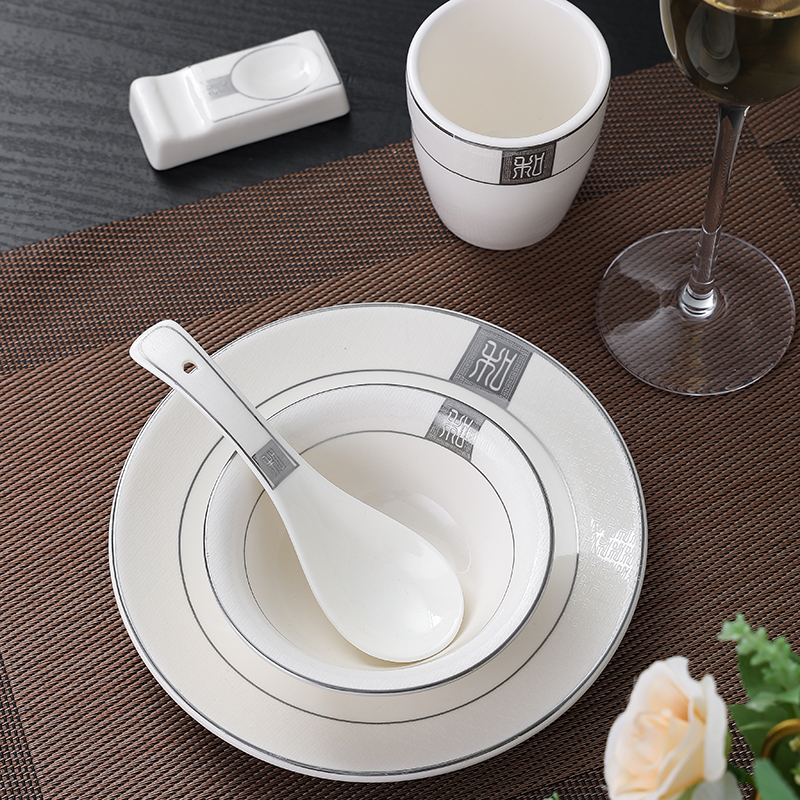 酒店摆台陶瓷餐具套装五件套饭店碗碟碗具餐厅商用中式碗logo定制