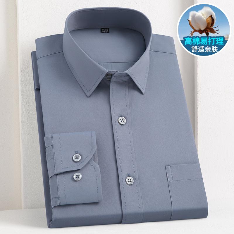 2025春季藏蓝色衬衫男长袖商务休闲职业工装衬衣男打底衫工作服