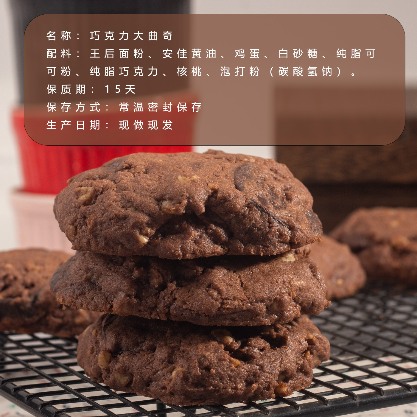 手工自制超大巧克力核桃爆浆软曲奇糖微苦黑5枚装少甜点饼干美式