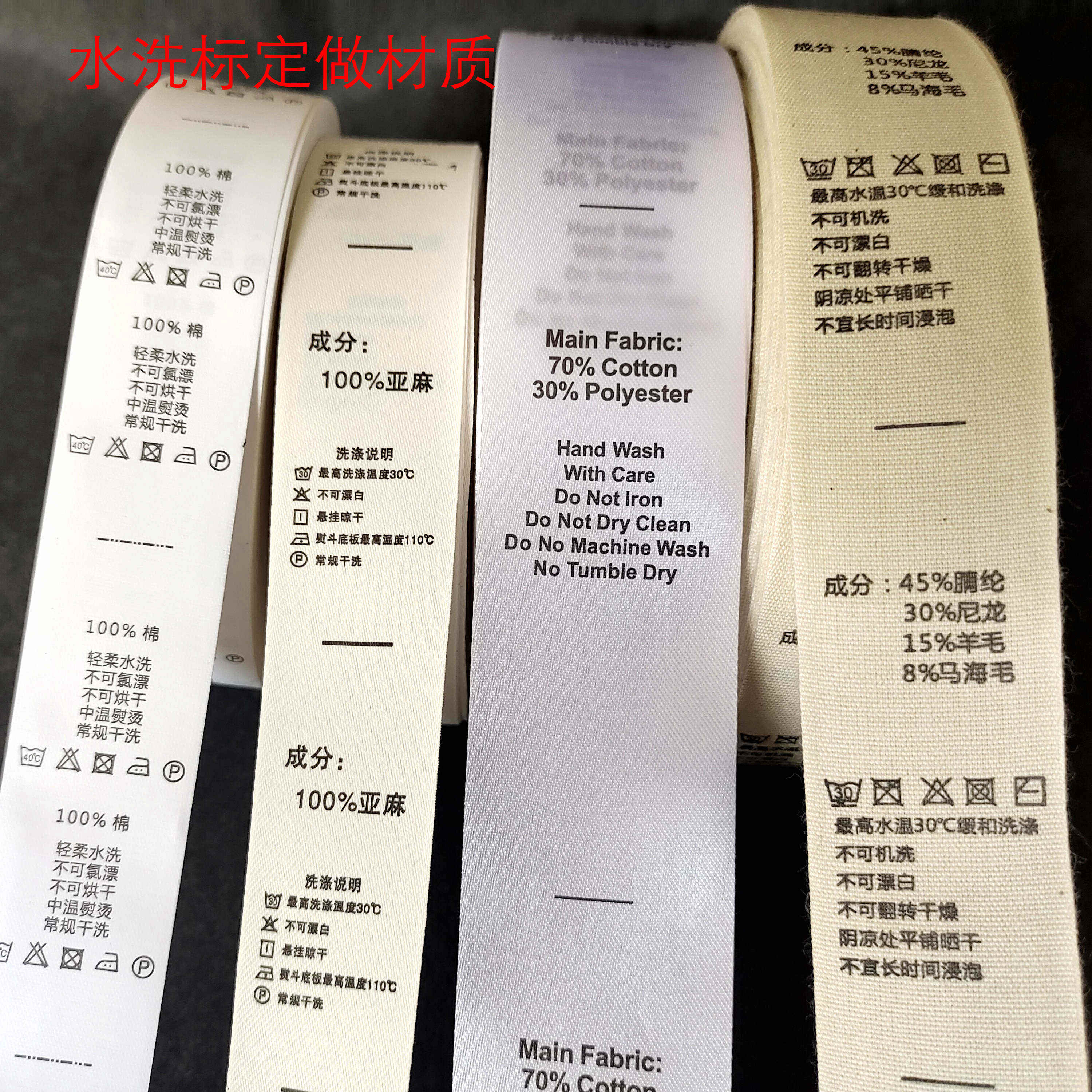 服装水洗标定做成份标水洗唛布标洗水唛通用成分标现货定制