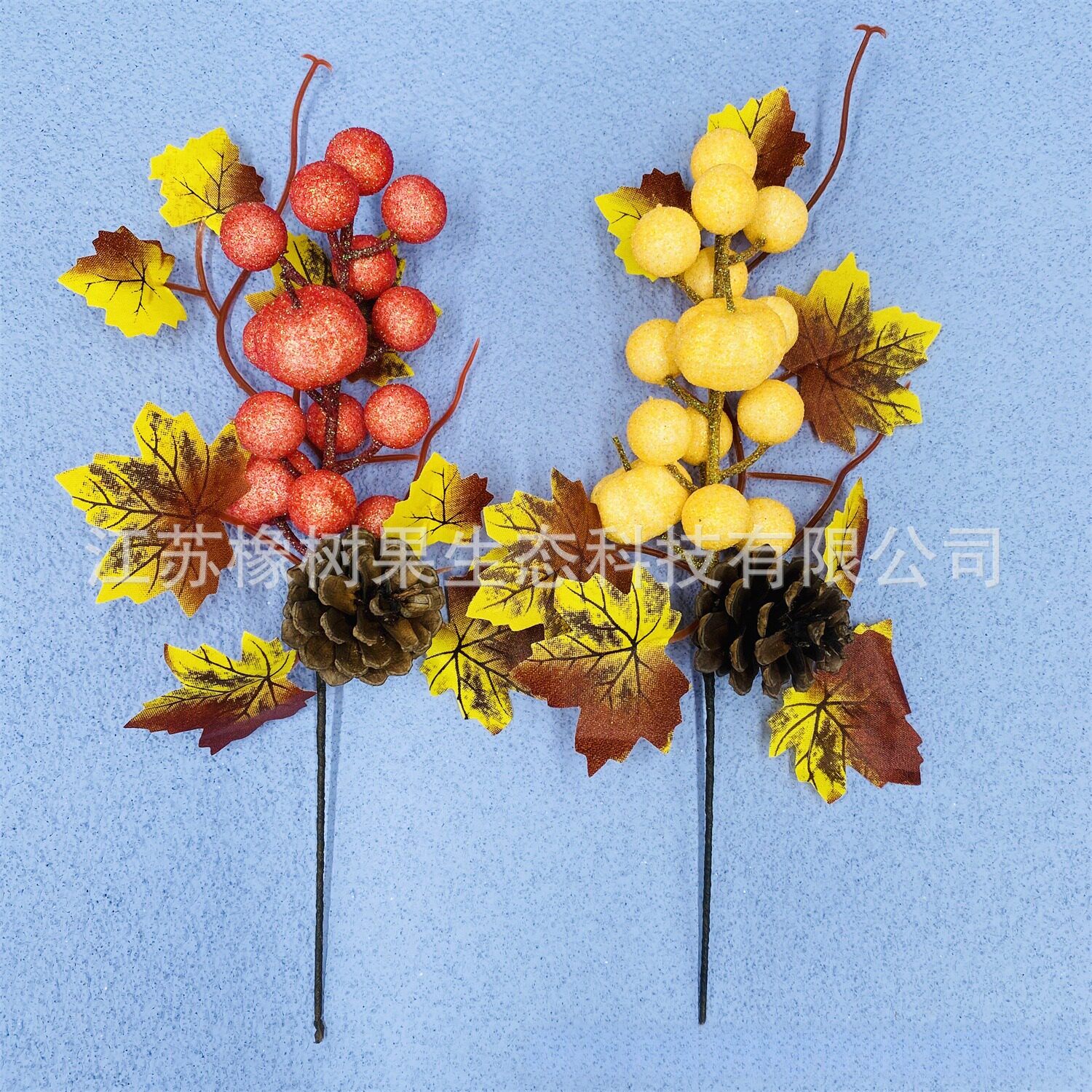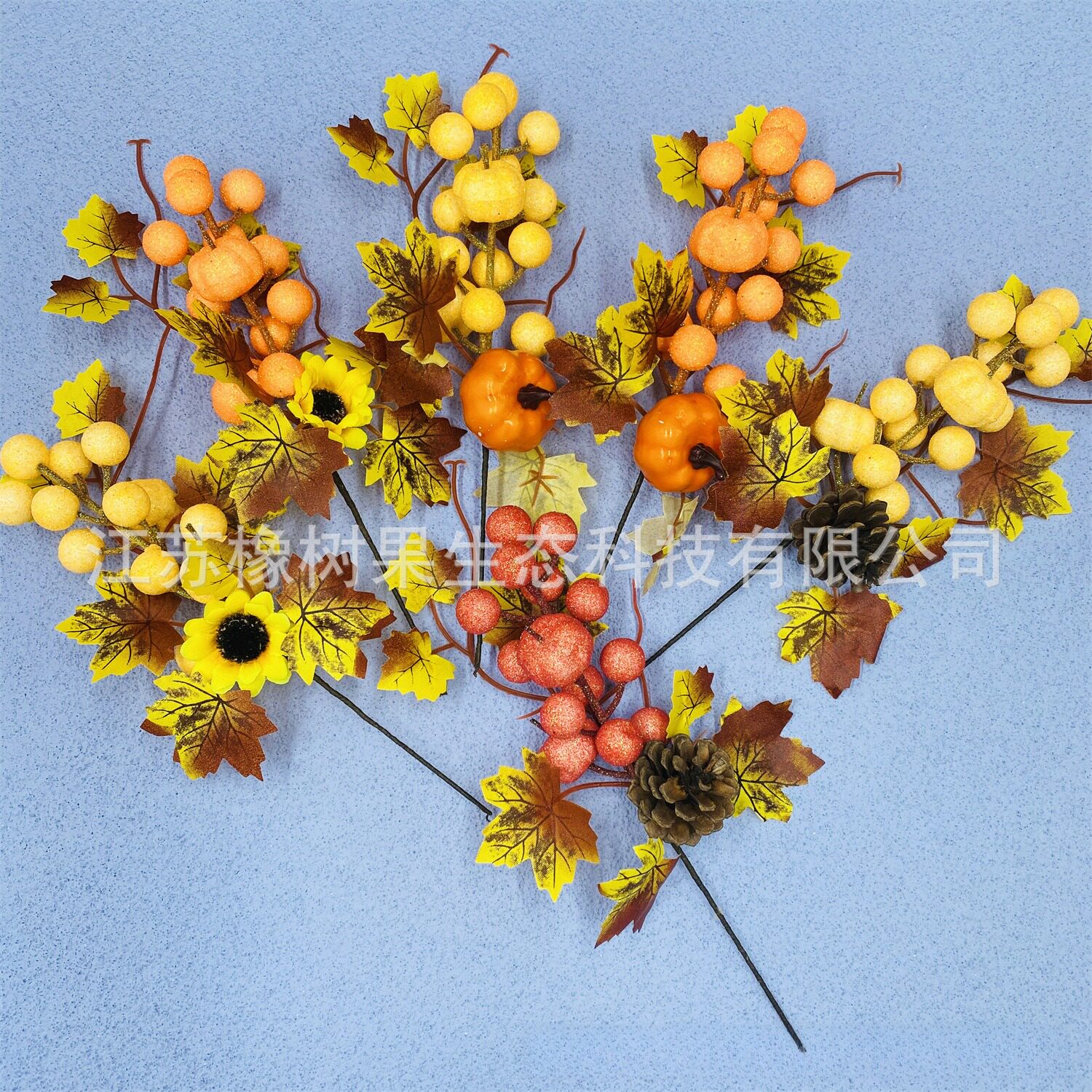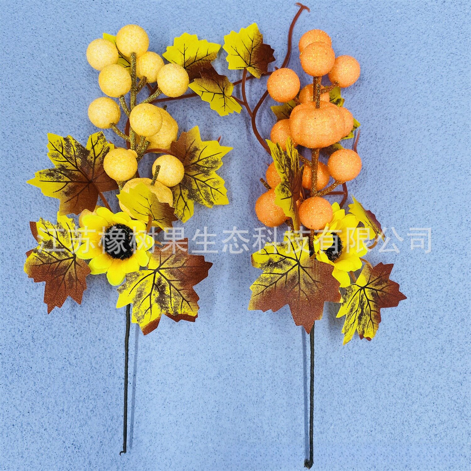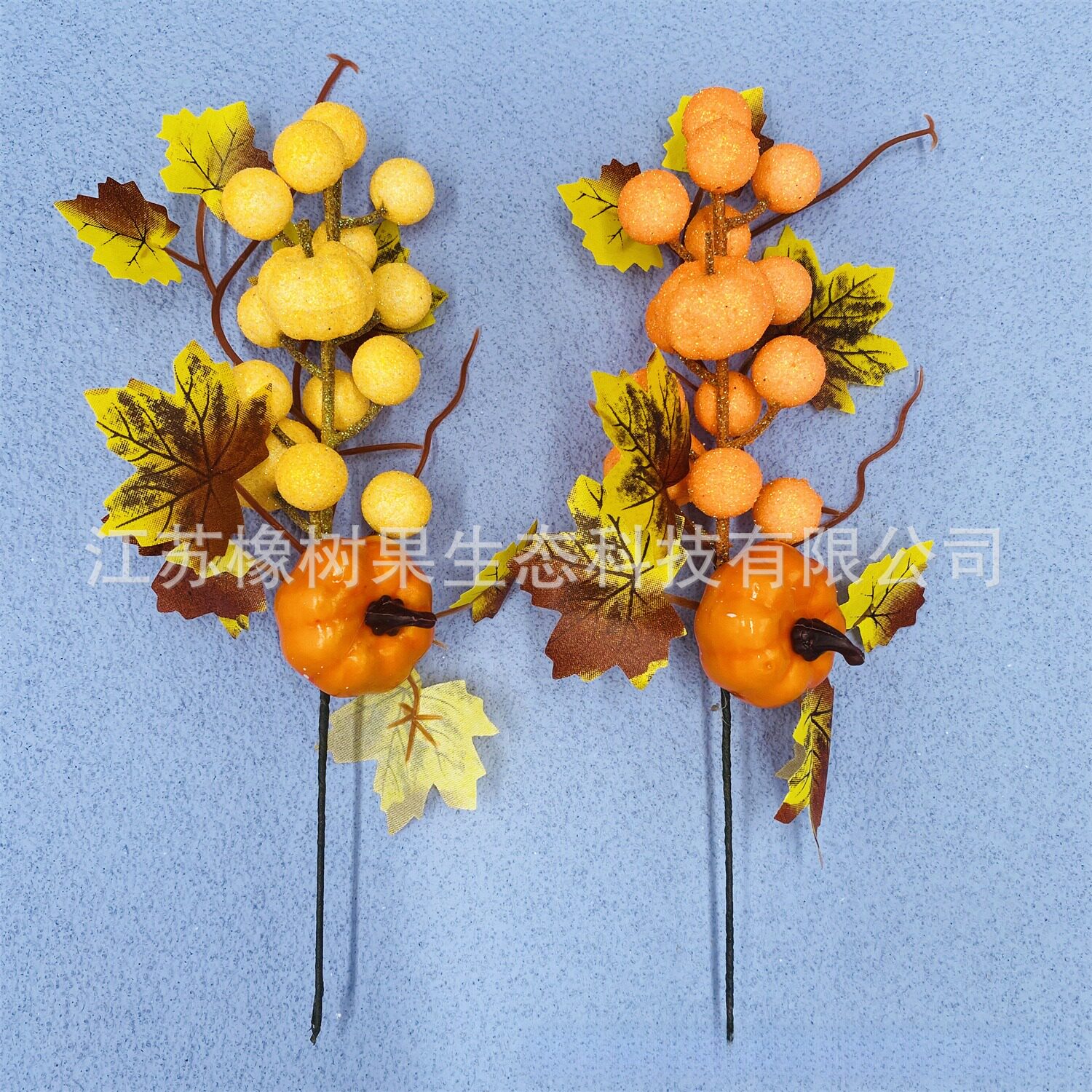 新品 秋季仿真枫叶南瓜花枝 感恩节丰收节万圣节家居装饰插枝