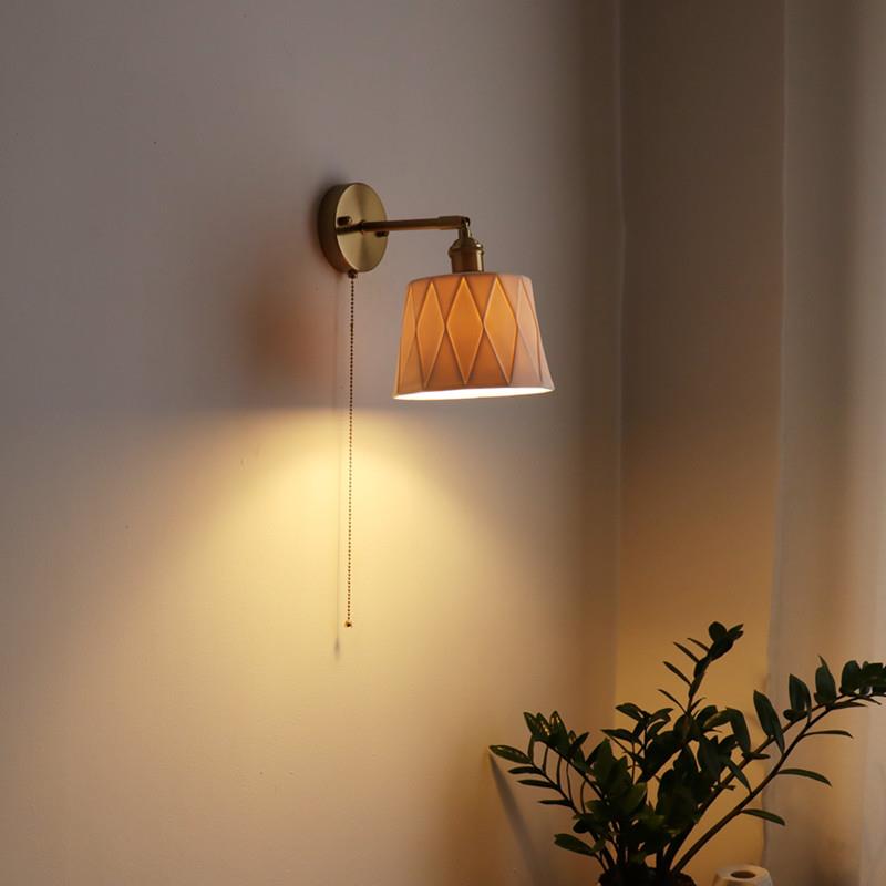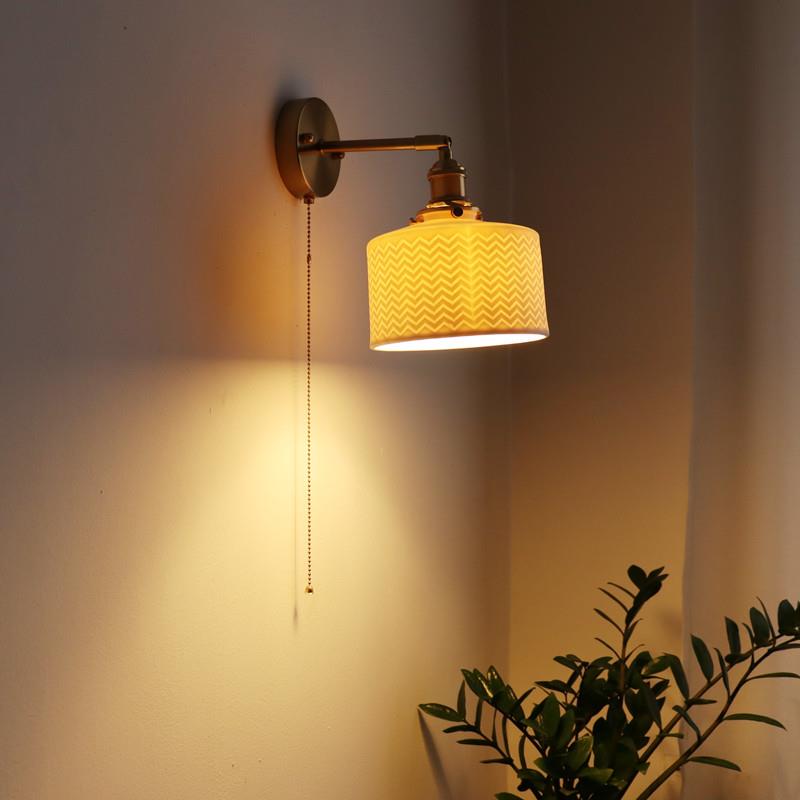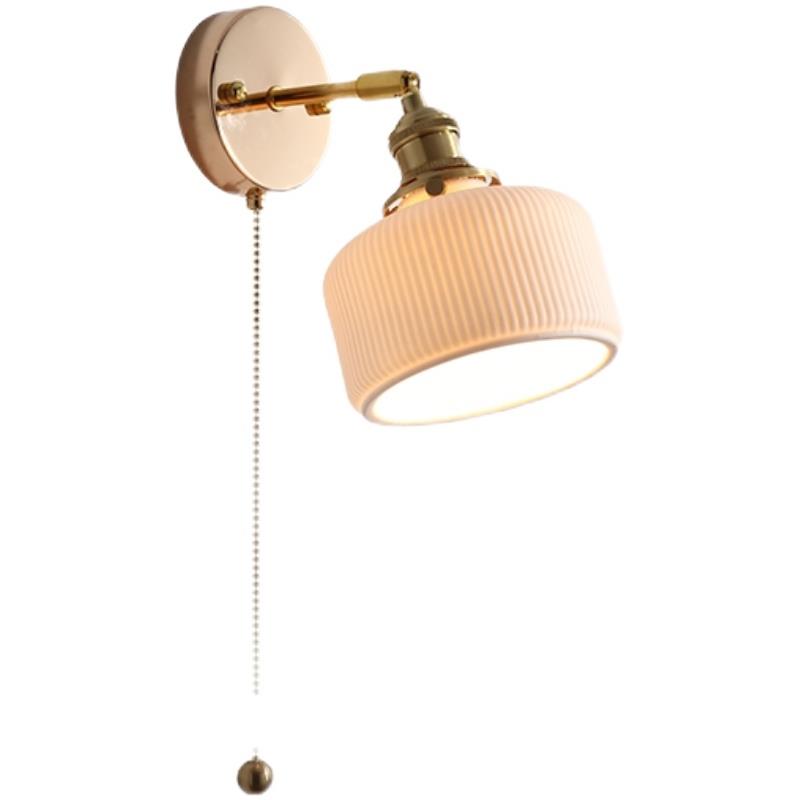 日式复古黄铜陶瓷拉线开关壁灯卧室床头灯卫生间衣帽间背景墙灯具