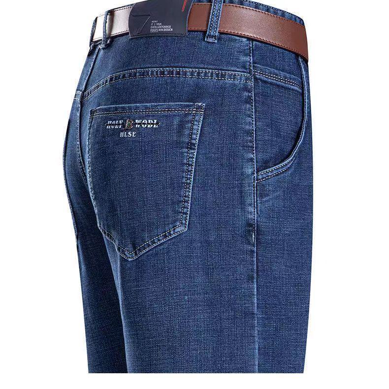 牛仔裤男士纯色裤子棉宽松直筒商务男裤中年爸爸休闲弹力高腰裤子