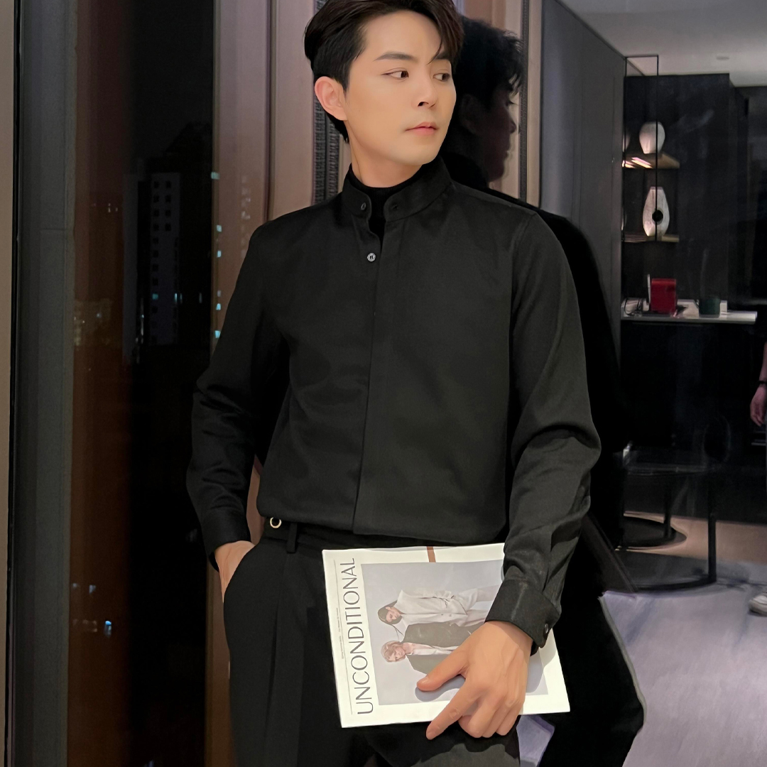 长袖修身衬衣弘号立领新中式