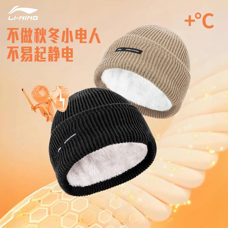 李宁针织帽女帽子男冬季新款加厚加绒情侣防风防寒保暖百搭毛线帽