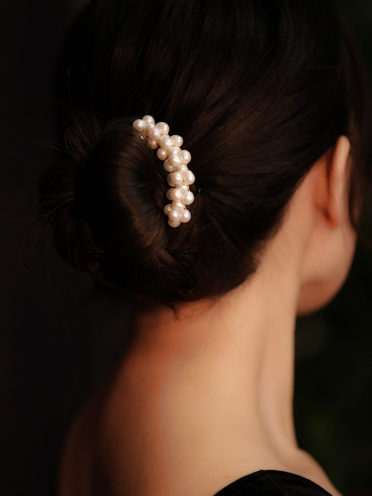 珍珠发簪新中式簪子女古风盘发气质发钗发梳半丸子头发饰发卡