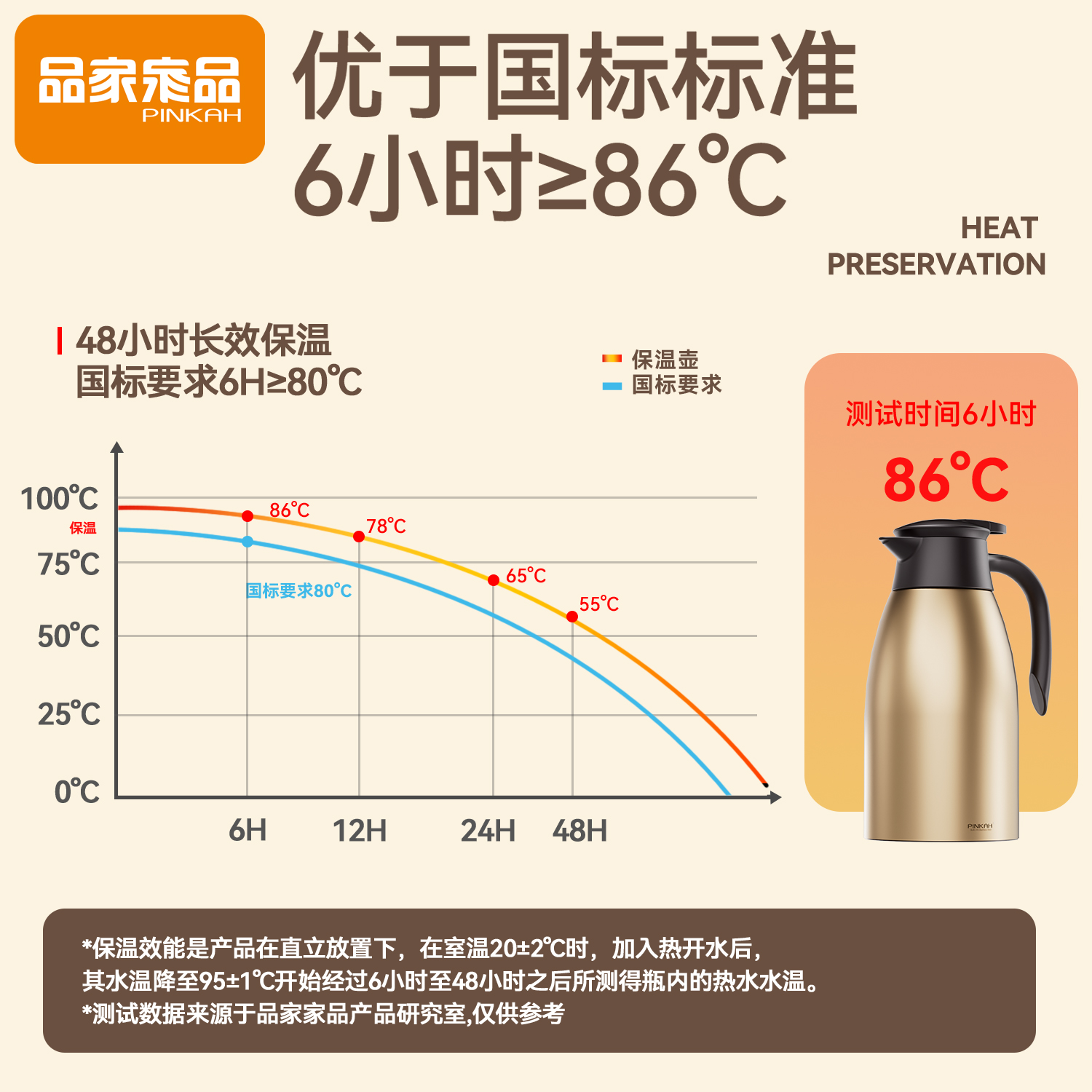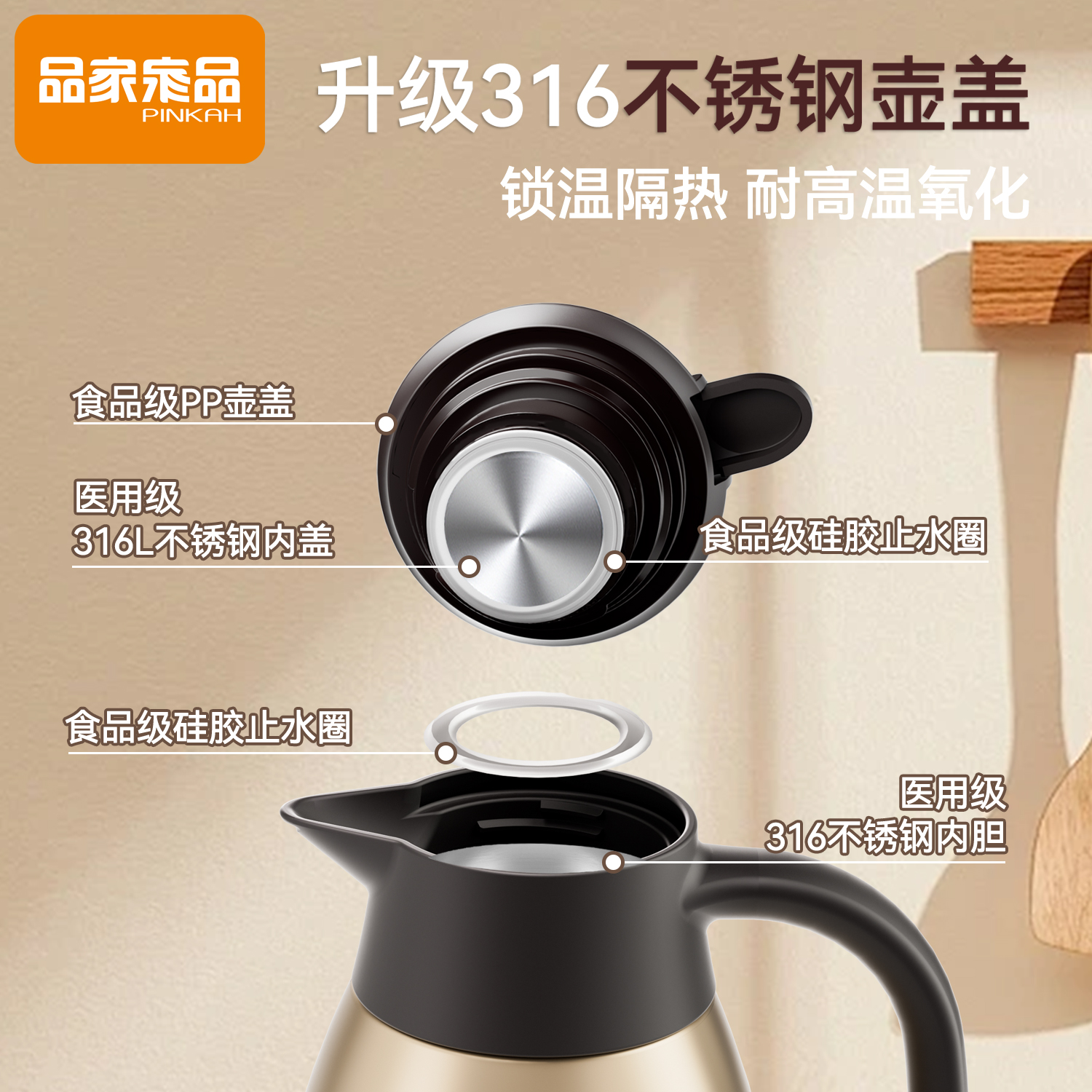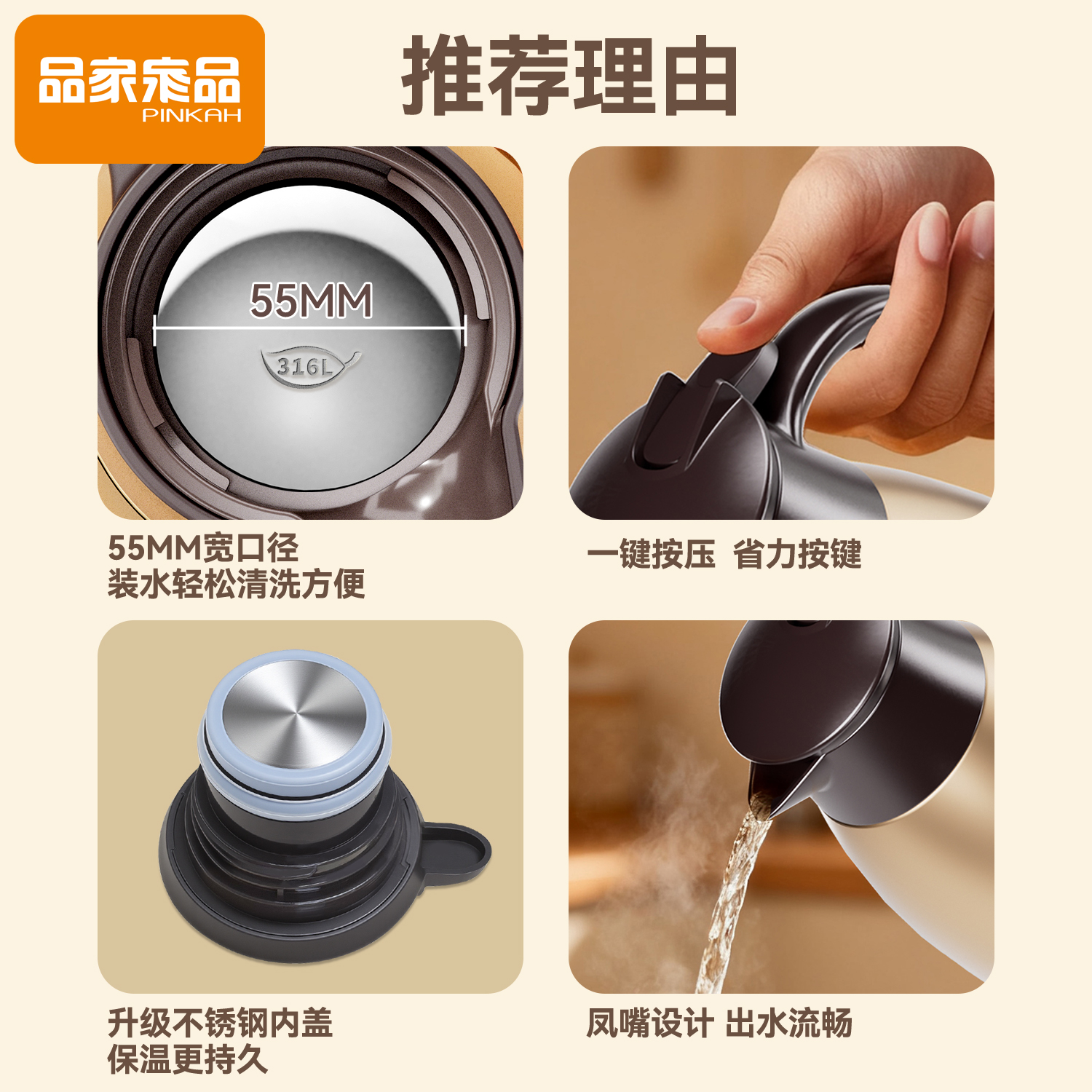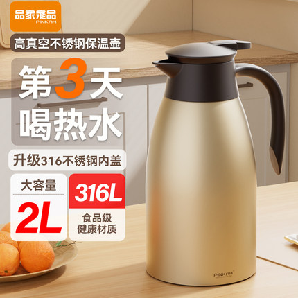 PINKAH品家家品保温壶大容量家用热水瓶2L保温暖壶不锈钢保温瓶