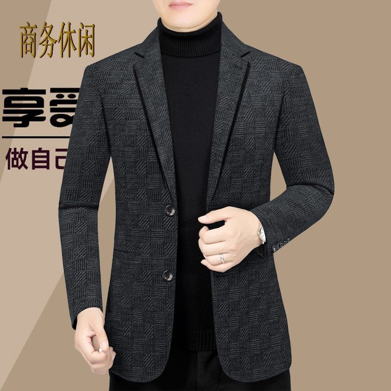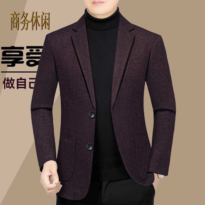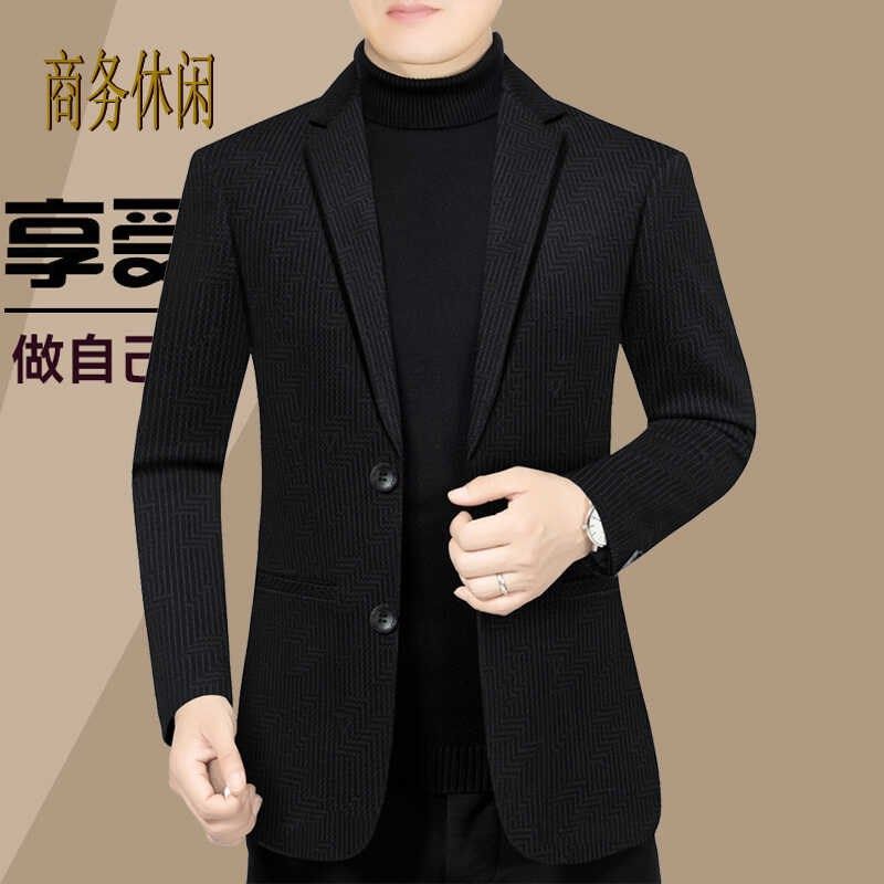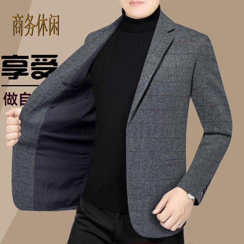 高档男士休闲西装外套中年男装条纹单西上衣商务秋季免烫50岁宽松