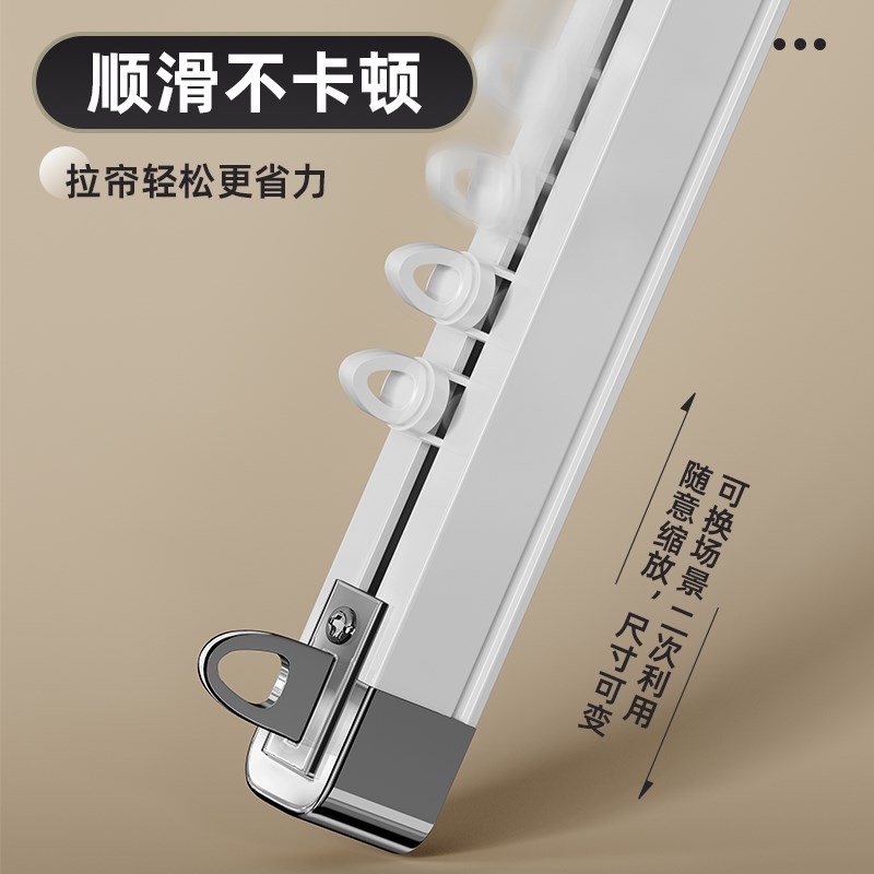 铝合金窗帘轨道顶装侧装伸缩窗帘杆导轨滑轮挂钩滑道双轨静音滑轨