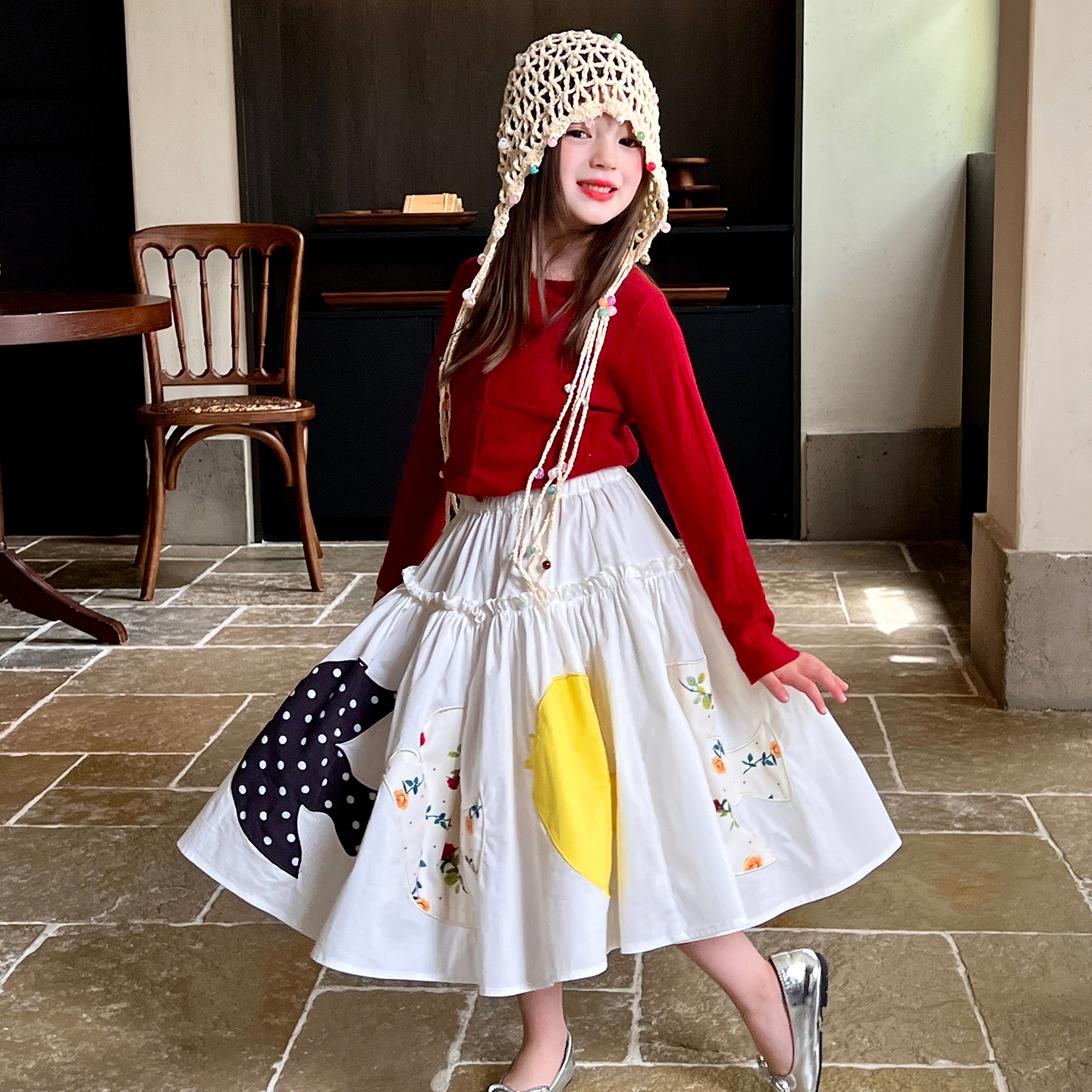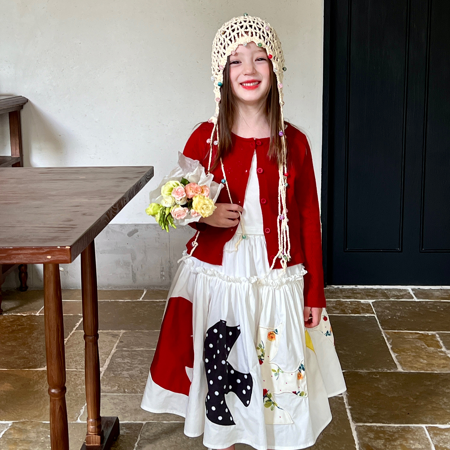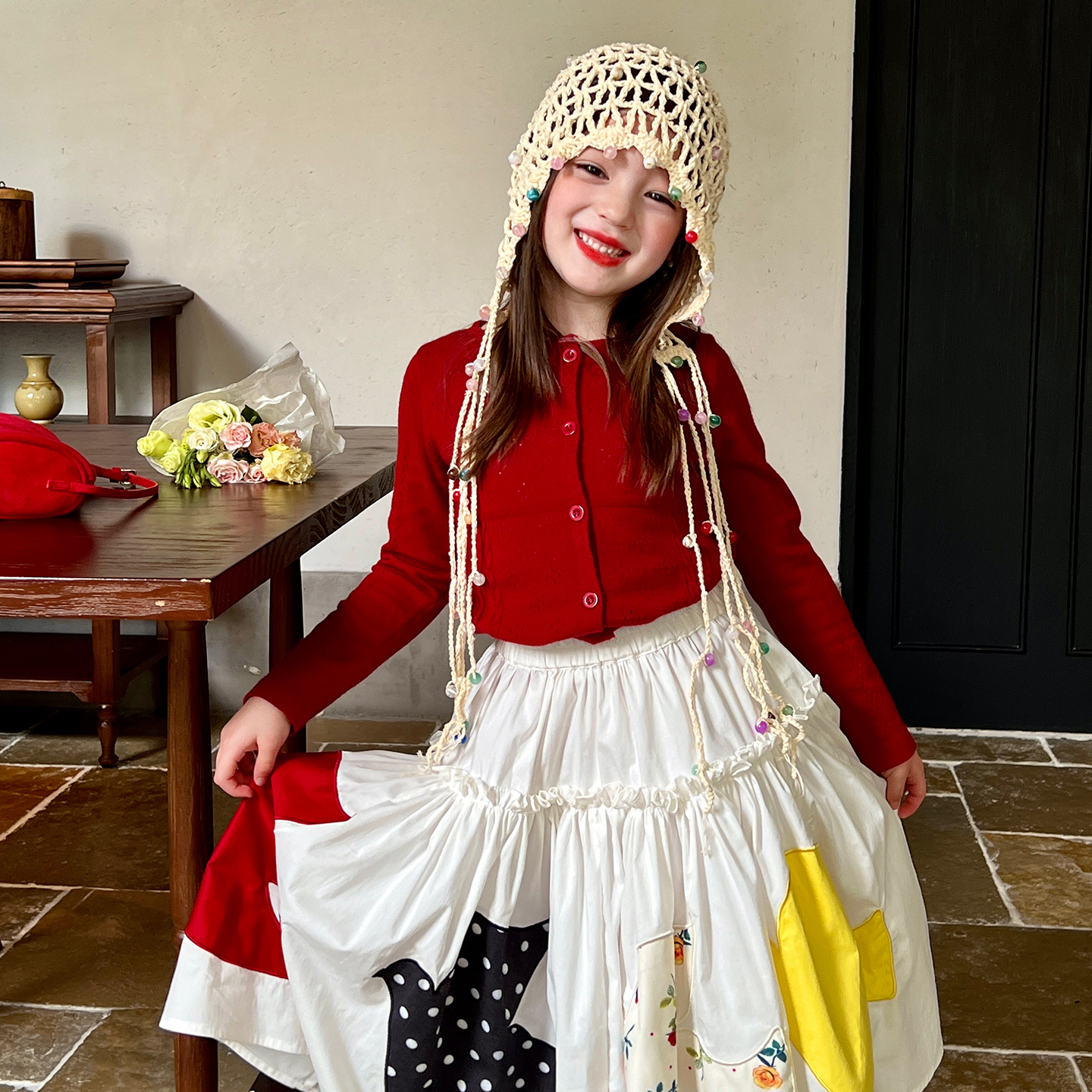 栀了成长记童装女童红色针织衫秋季新款儿童宝宝百搭休闲开衫上衣