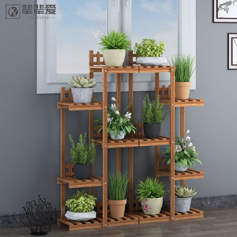 阳台实木质花架子室内客厅多层绿萝植物架户外防腐落地置物爬藤架
