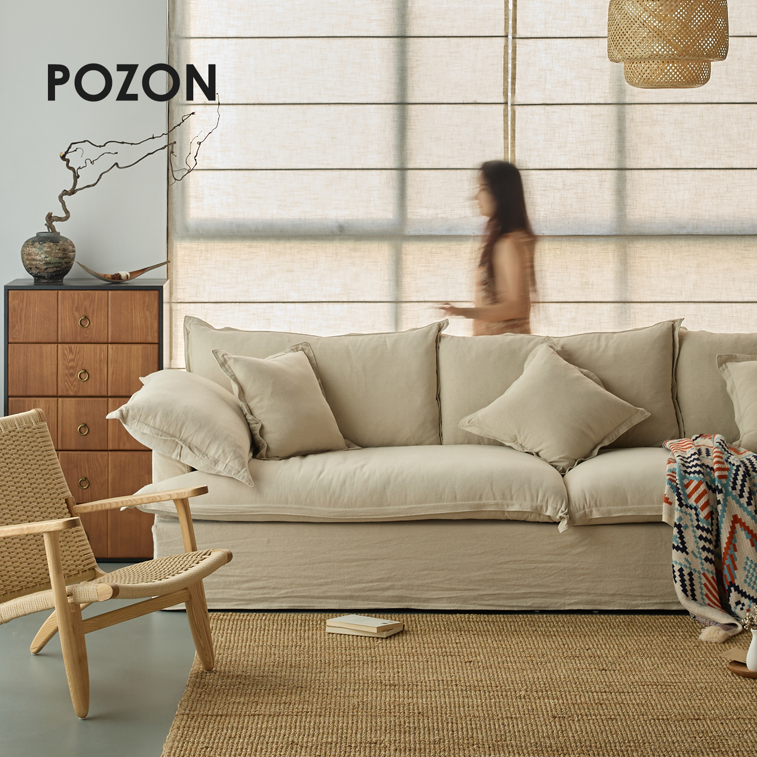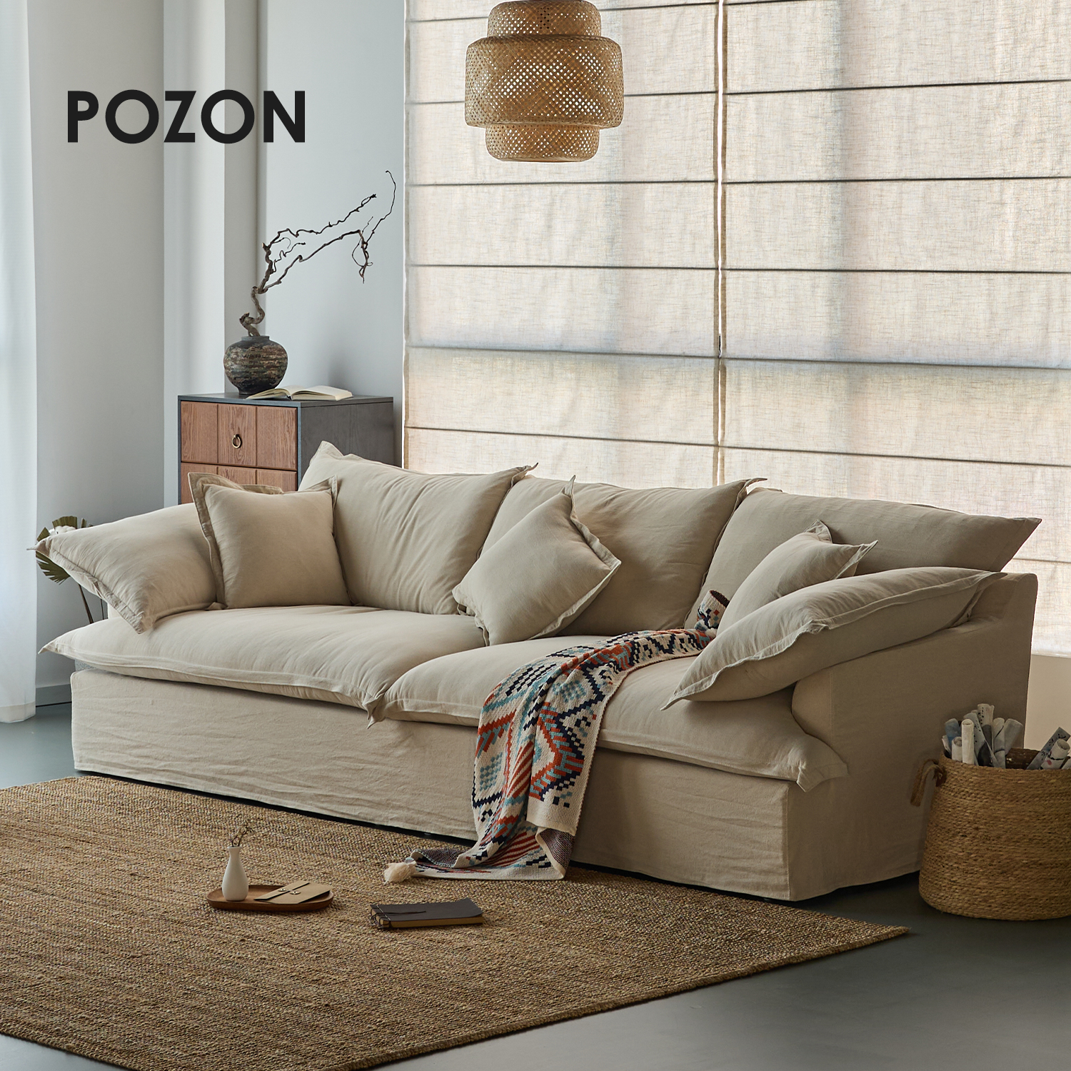 POZON朴琢/亚麻秋池沙发布艺直排可拆洗法式中古侘寂风民宿小户型