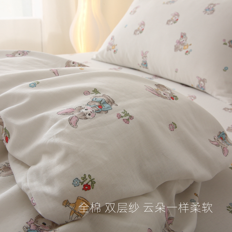 a类全棉有氧双层纱四件套纯棉床单被套床品套件儿童可爱女2024新