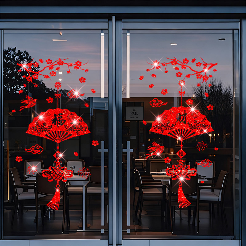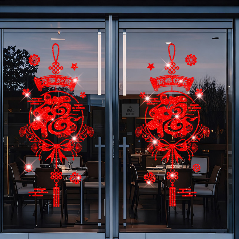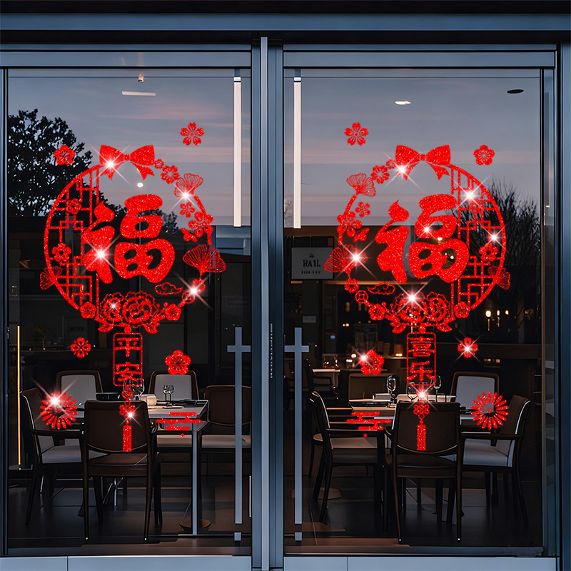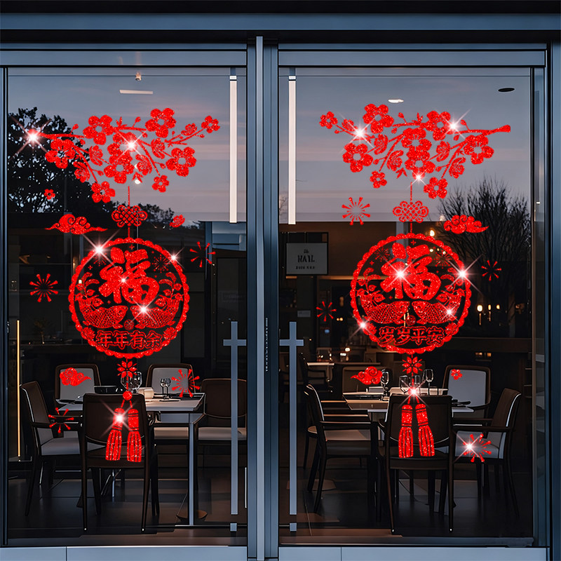 2026新年窗花贴纸福字门贴装饰贴玻璃贴纸新年过年春节贴窗年画