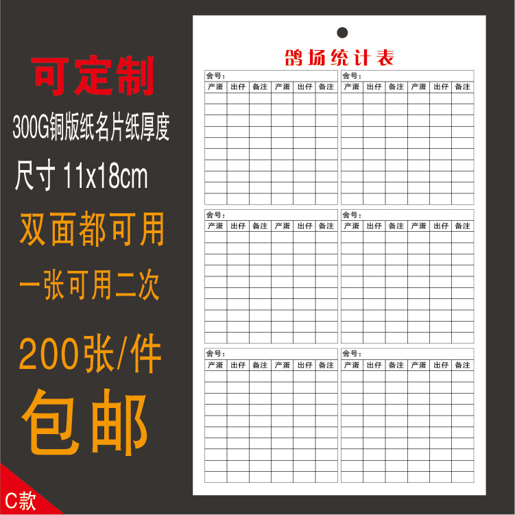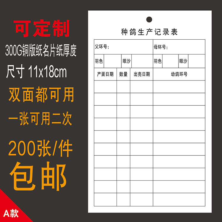 种鸽生产记录表肉鸽生产登记鸽子记录卡白鸽记录卡鸽用卡片养殖卡