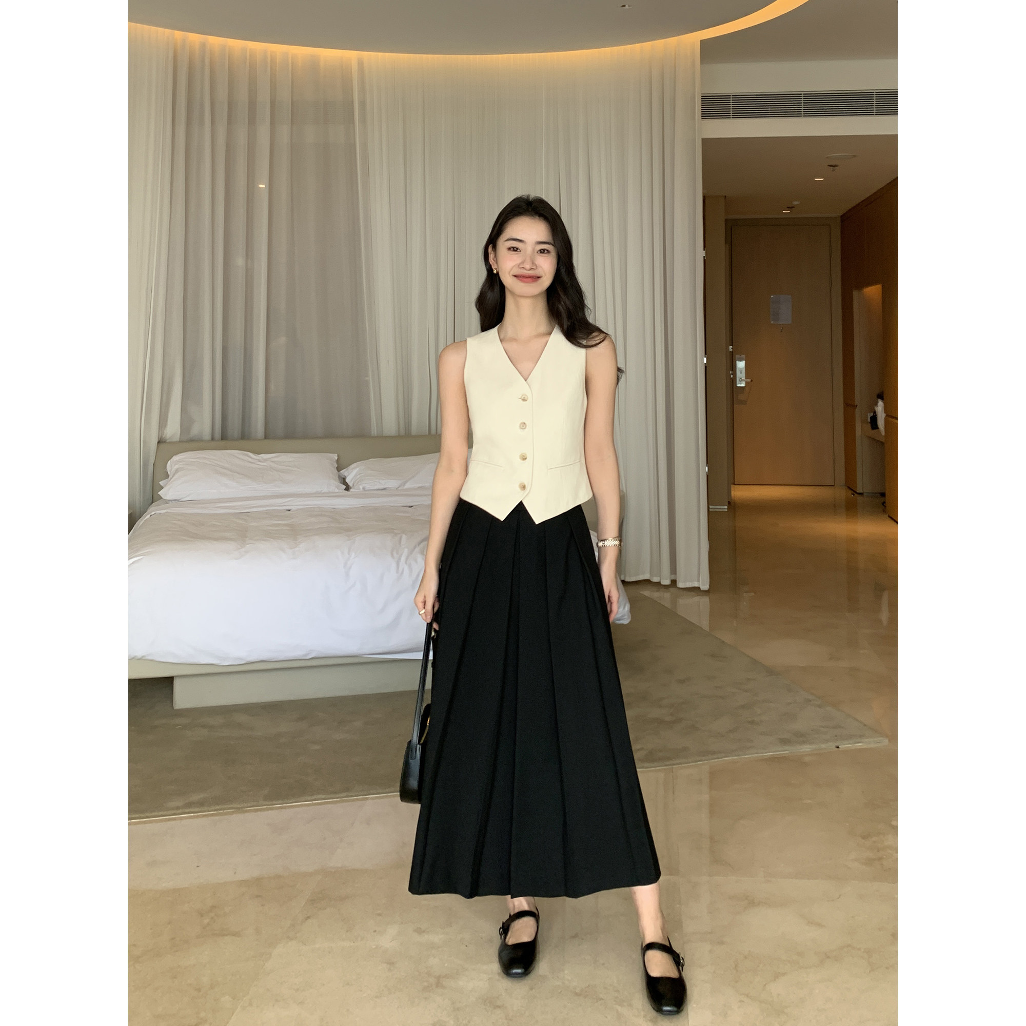 Maven Lin【现货6.5折】复古百褶半身裙中长款高腰显瘦垂感A字裙