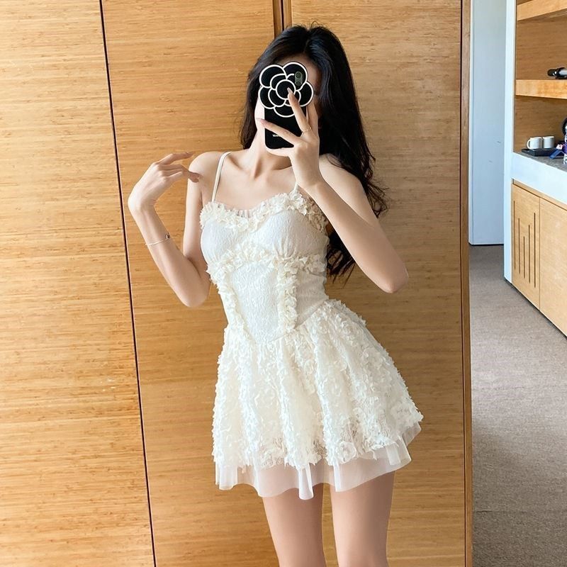 蕾丝泳衣女款保守遮肚显瘦泡温泉度假韩国ins超仙性感纯欲游泳装