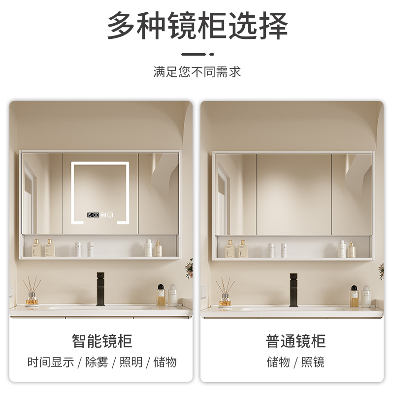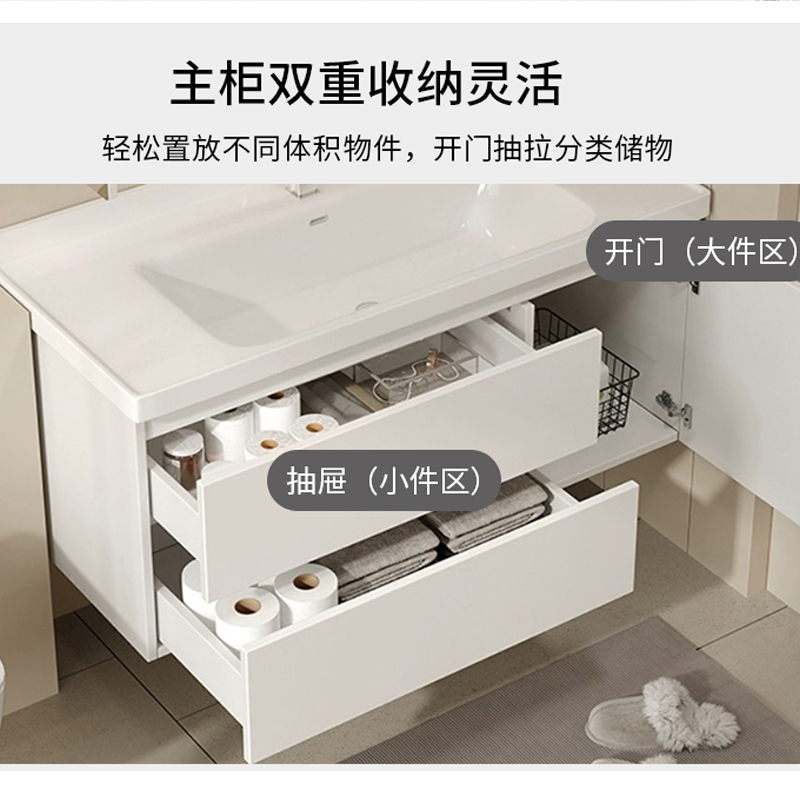 现代简约实木浴室柜组合卫生间陶瓷一体盆洗手洗脸盆洗漱台套装