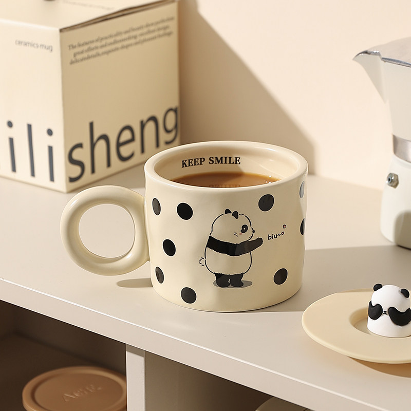 奶fufu马克杯陶瓷杯子带盖情侣杯网红可爱水杯女生超萌礼物早餐杯
