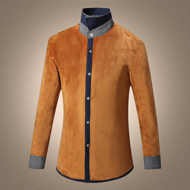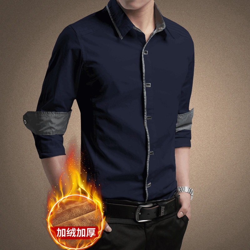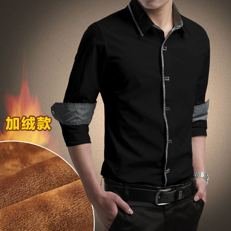 黑色衬衫衣男长袖秋冬季加绒加厚保暖西装打底内搭按扣铁扣衬衫土